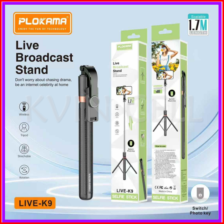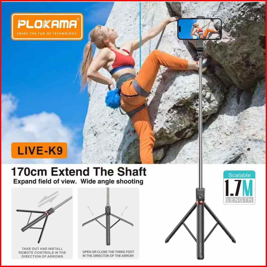 Plokama K9 Tongsis Tripod Bluetooth 3 In 1 Selfie Stick Tripod 170cm 1.7 Meter