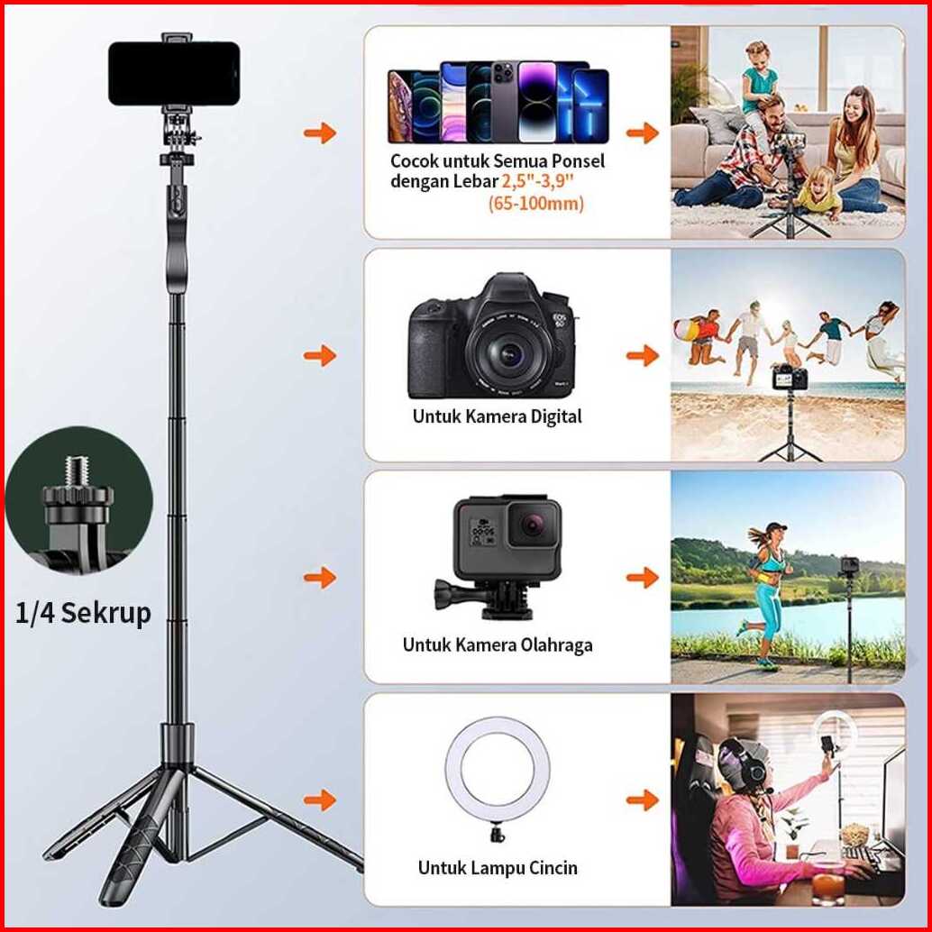 Dl L16 Tongsis Tripod Bluetooth Selfie Stick Remote Tripod Hp Kamera Dslr Tongsis 1800mm Dengan 1 4 Adaptor