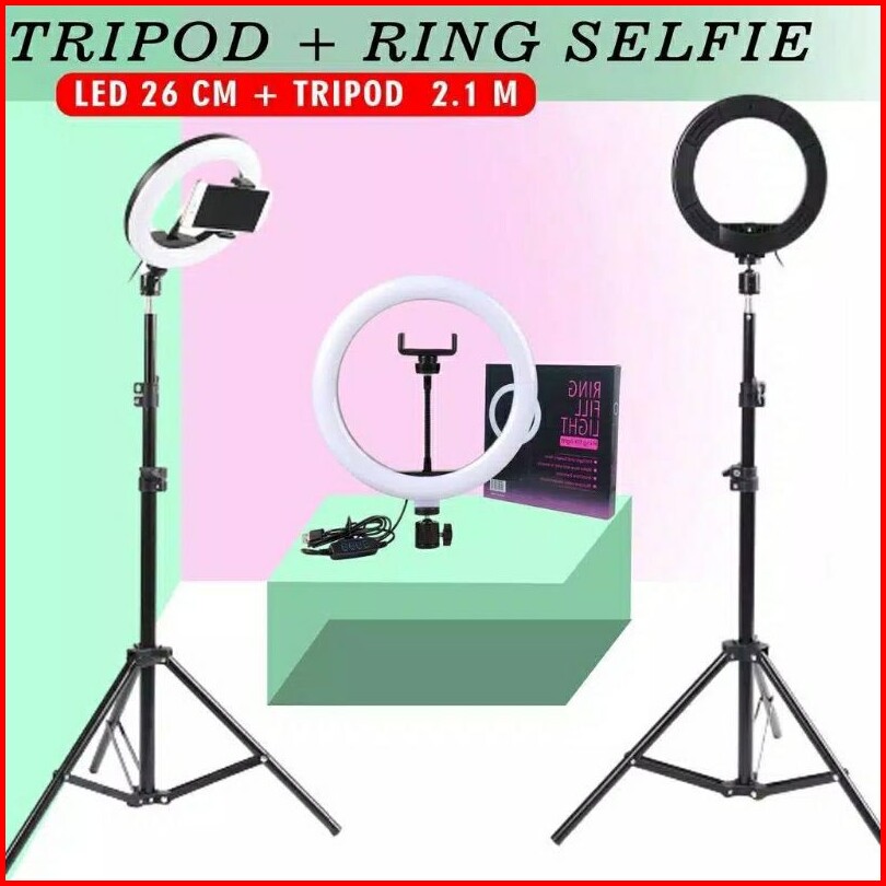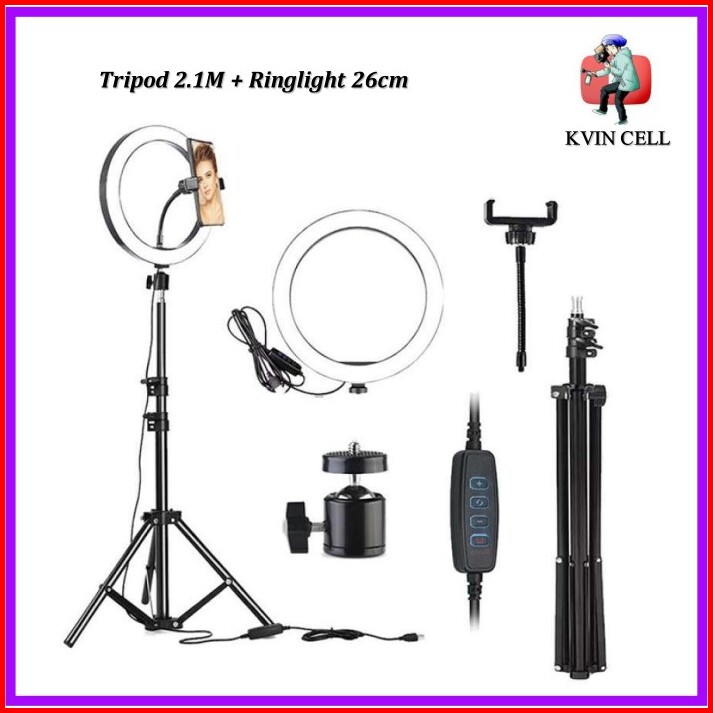Paket Ring Light Tripod 26cm 26 Cm Tripod Tripot 2.1m Lengkap Murah Stand Phone Holder Lampu Studio Hp Make Up Mua Selfi