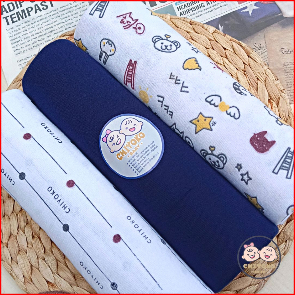3 Pcs Bedong Bayi Baru Lahir Bahan Kaos 110 X 90 Serian Navy Chiyoko Baby Sni