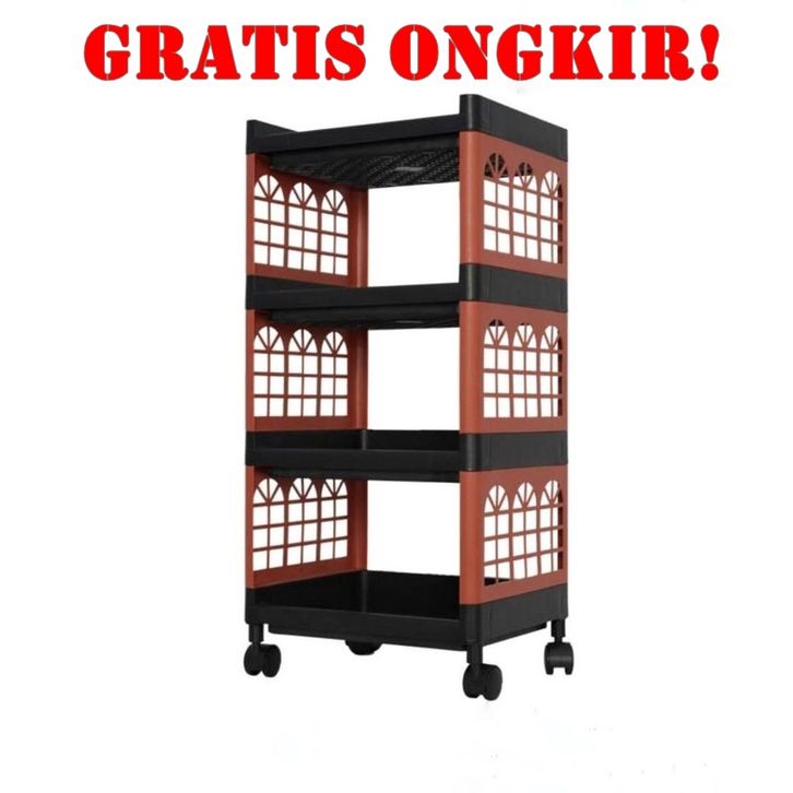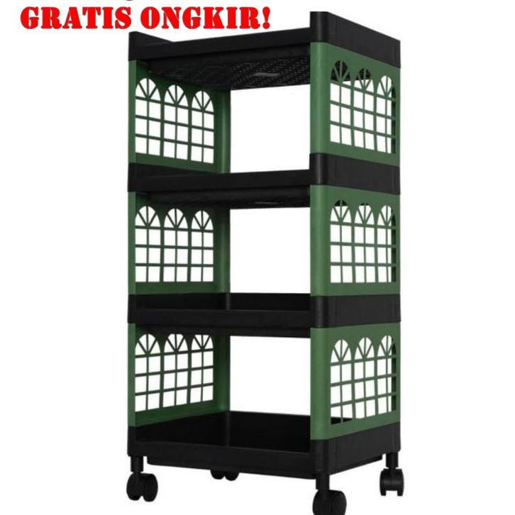 FREE ONGKIR-Rak Yoyo Plastik 4 Susun Rak serbaguna 4 tingkat Roda