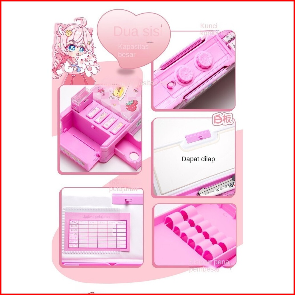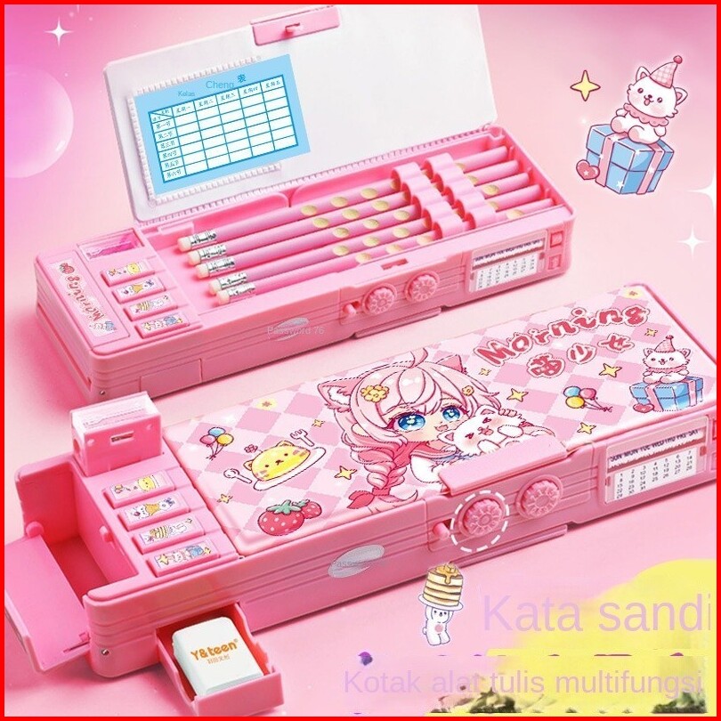 Kotak Alat Tulis Anak Perempuan Kotak Pensil Kata Sandi Multi-fungsi Wanita Yang Cocok Untuk Siswa Di