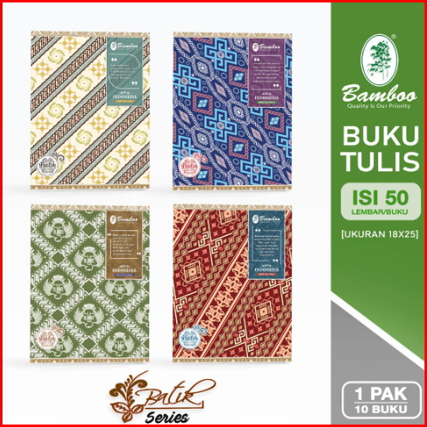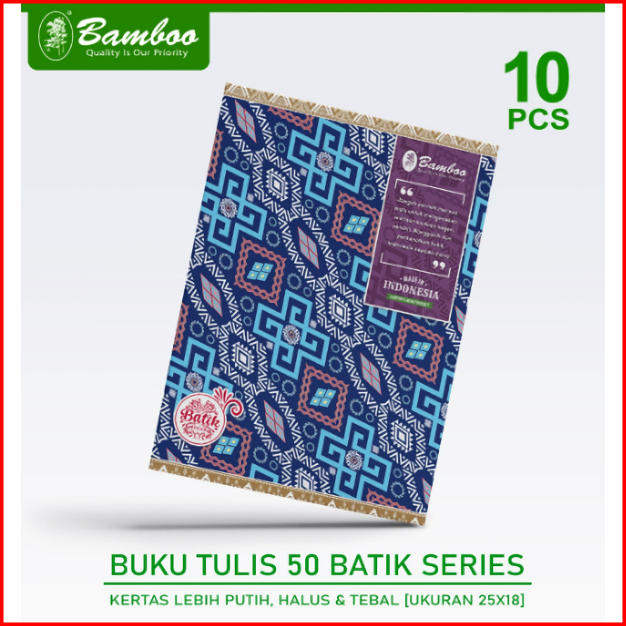 Buku Tulis Sekolah Bamboo Batik Edition Ukuran Panjang Boxy Isi 50 Lembar 10 Buku