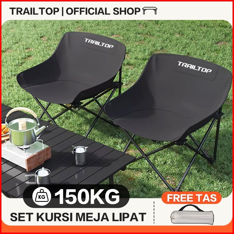 Trailtop Meja Kursi Lipat Bulat Moon 1 Set Meja Lipat Outdoor Dan Kursi Lipat Portable