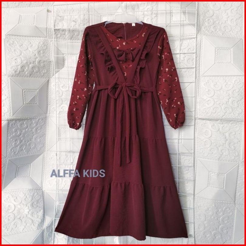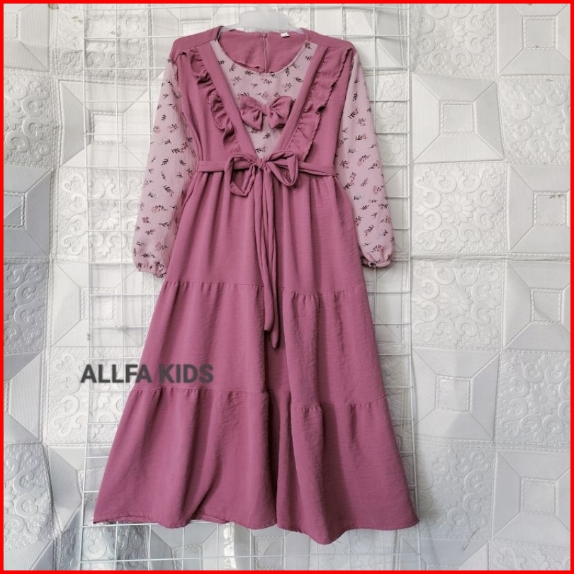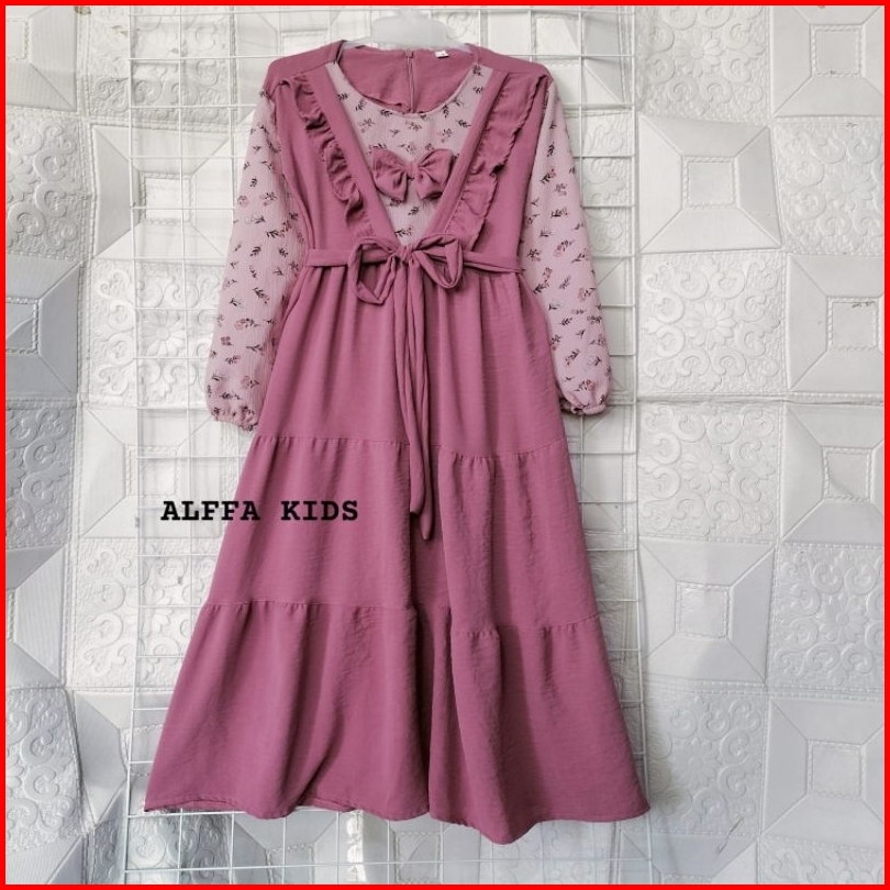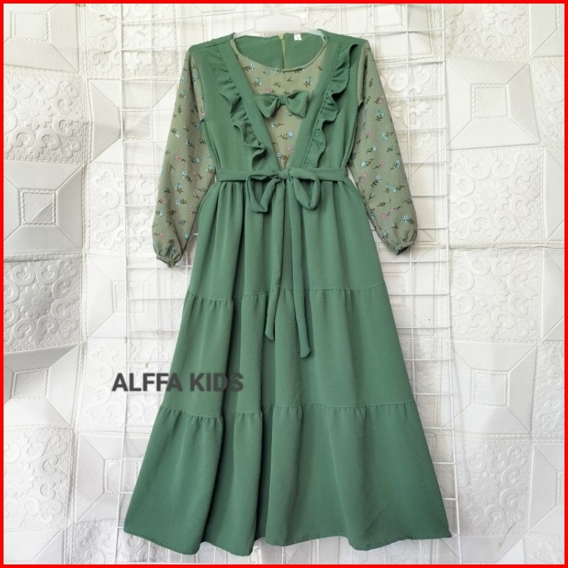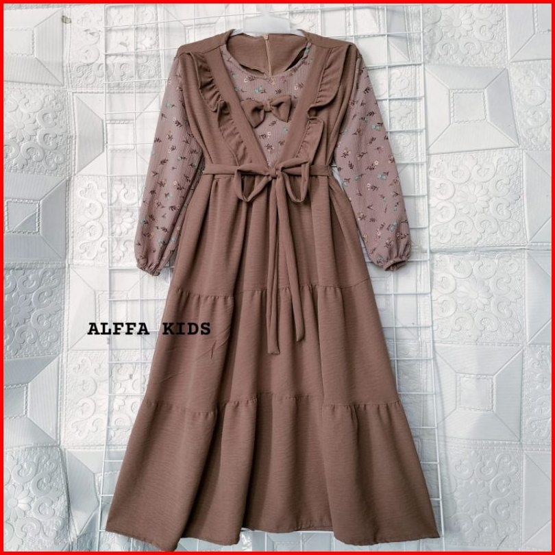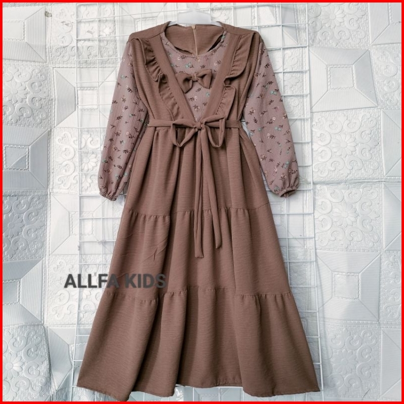 Jenie Dres L Gamis Anak Bahan Crinkle Motif Bunga Mix Polos