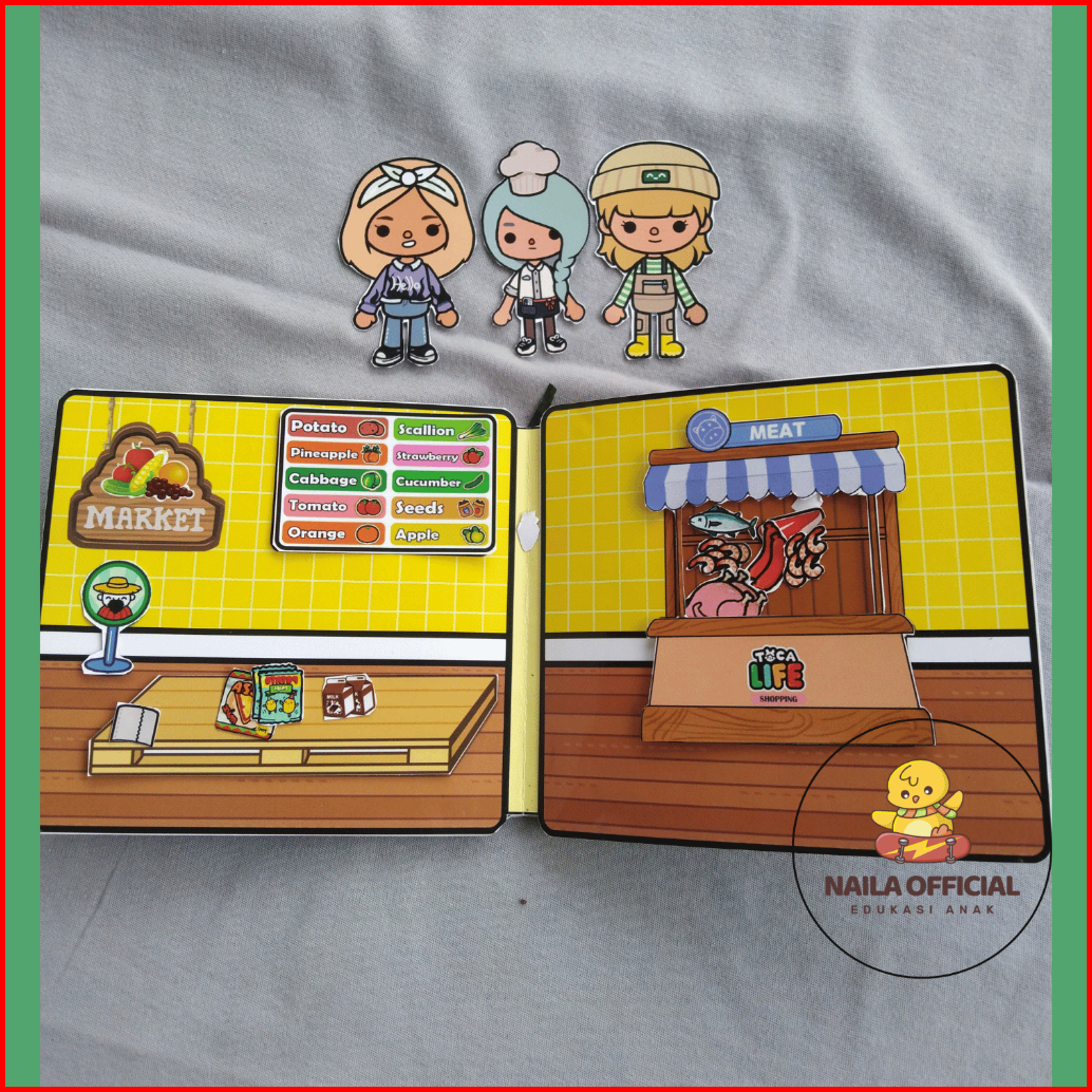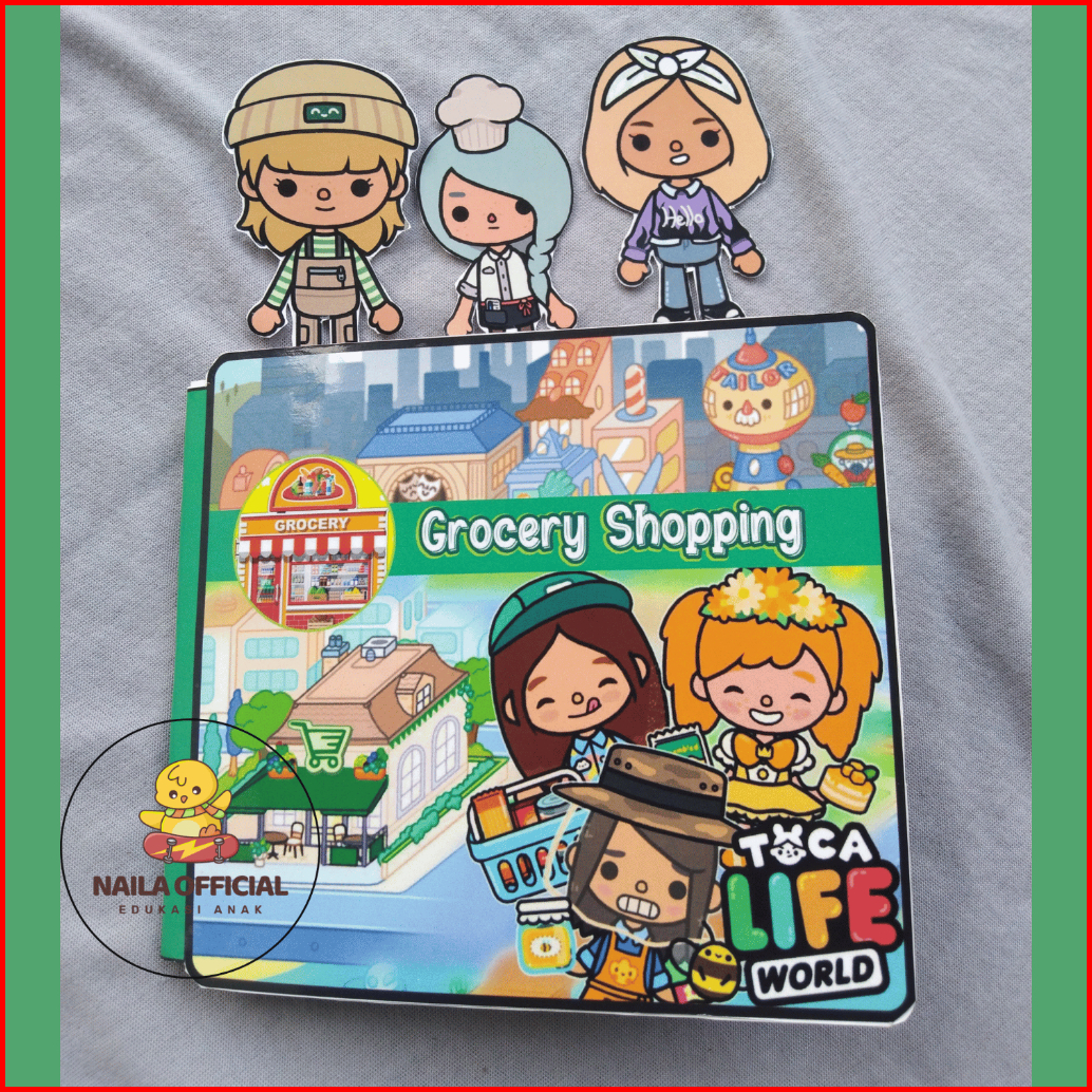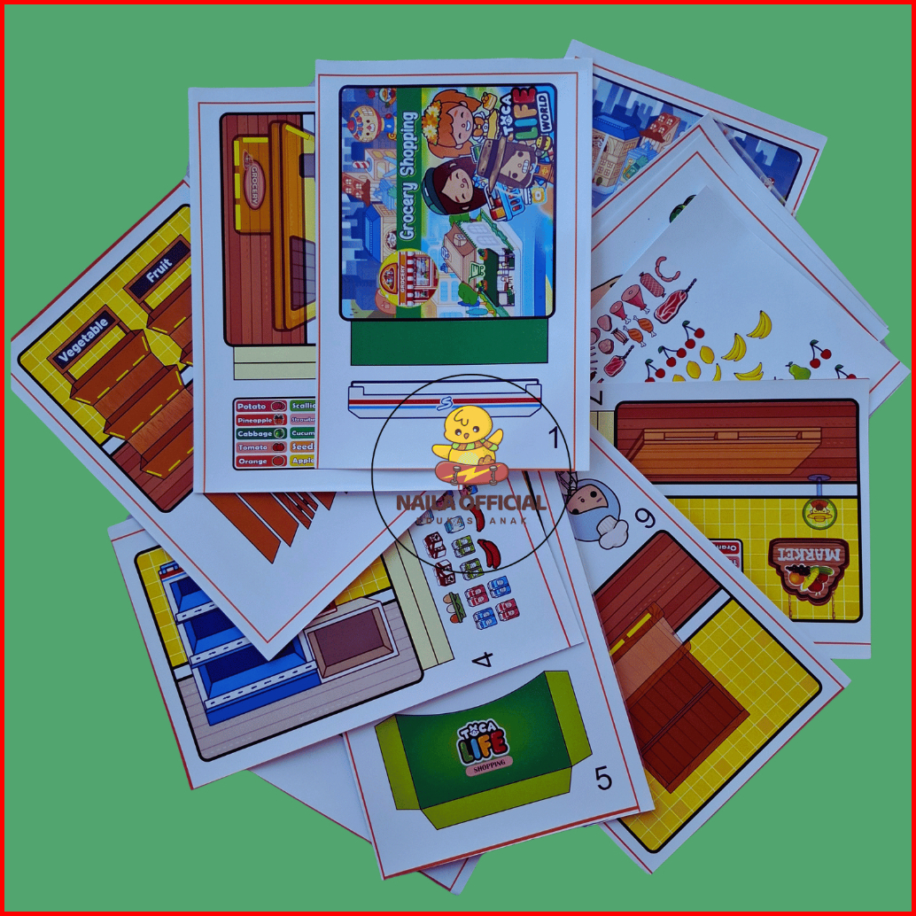 Paper Doll Toca Boca Grocery Shopping Mall Mainan Edukasi Anak Bongkar Pasang Laminasi Glossy