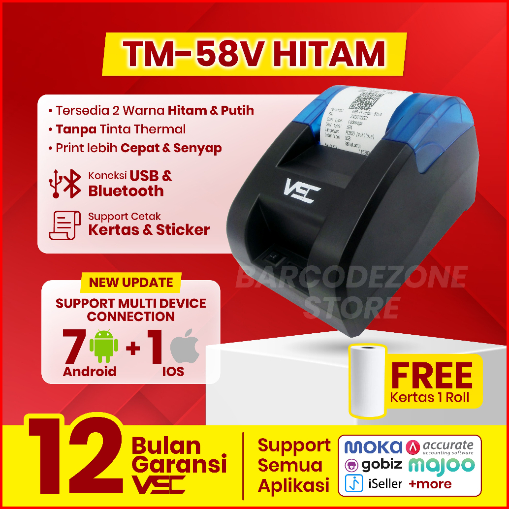 Mini Printer Thermal Bluetooth Vsc Tm-58v 58mm Rpp02 - Printer Kasir Printer Alamat Printer Struk - Rj-11 - Support Moka