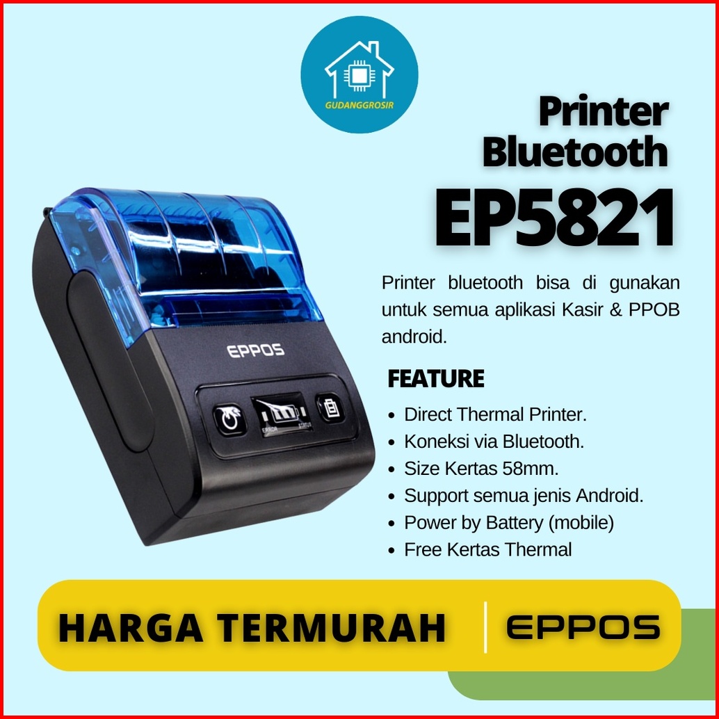 Printer Bluetooth Portable Eppos Ep5821 58mm Dan Kertas 10 Rol