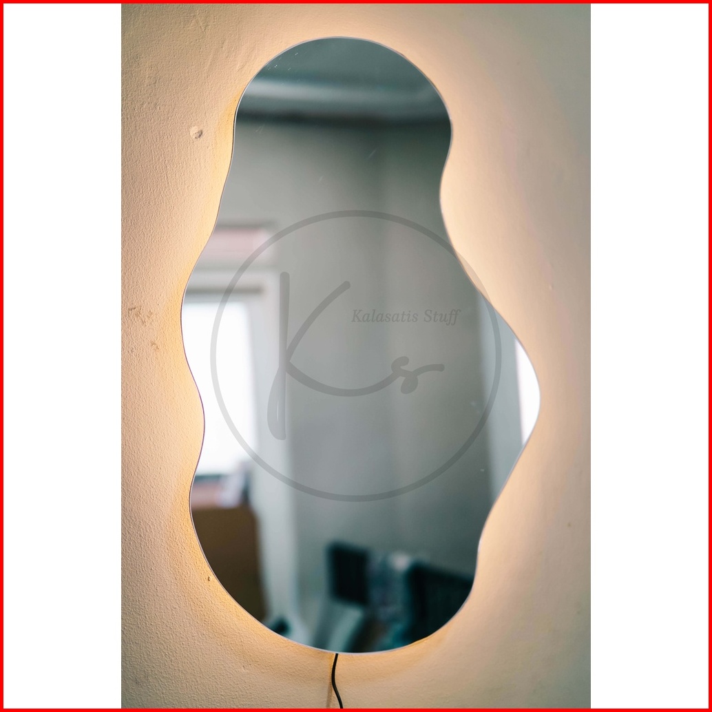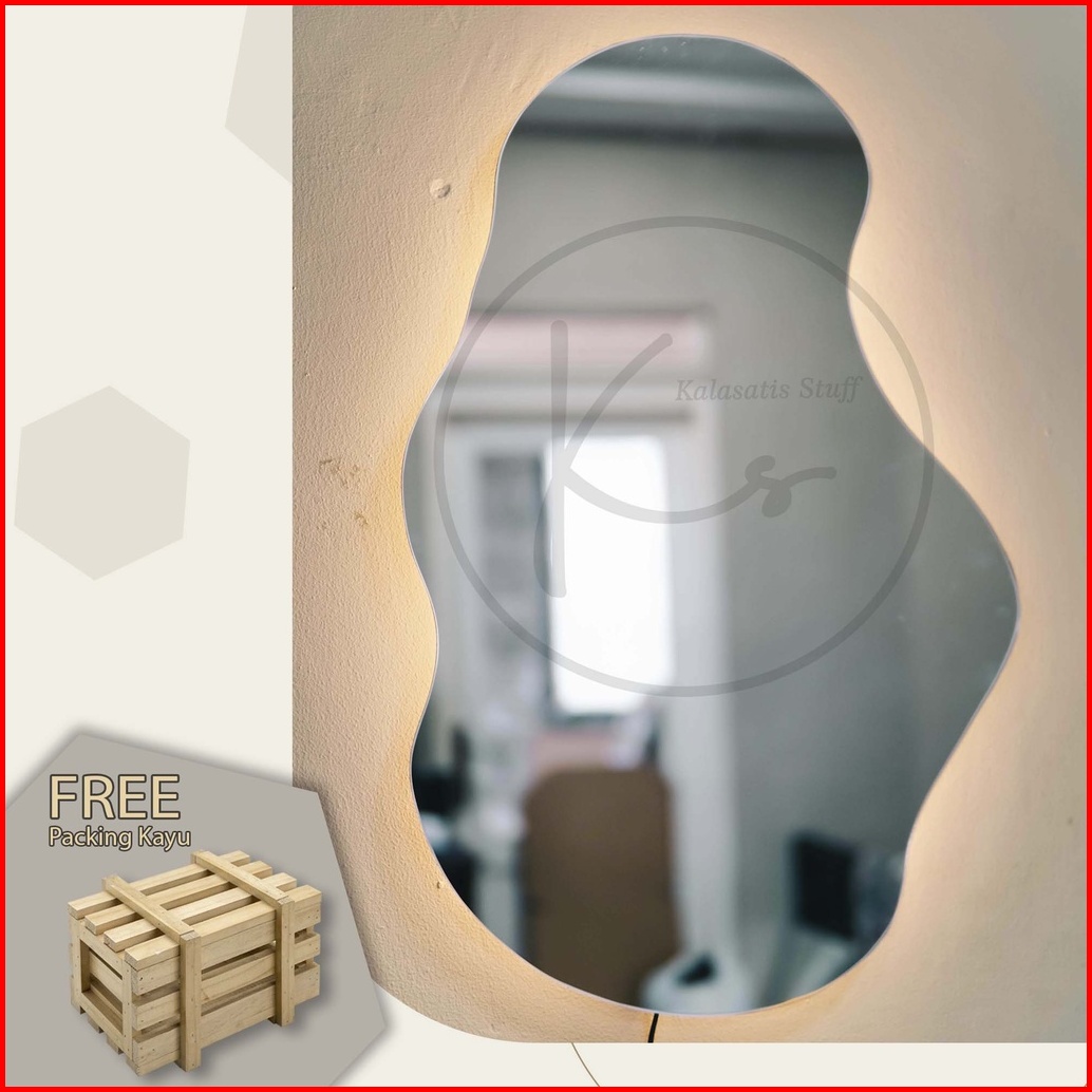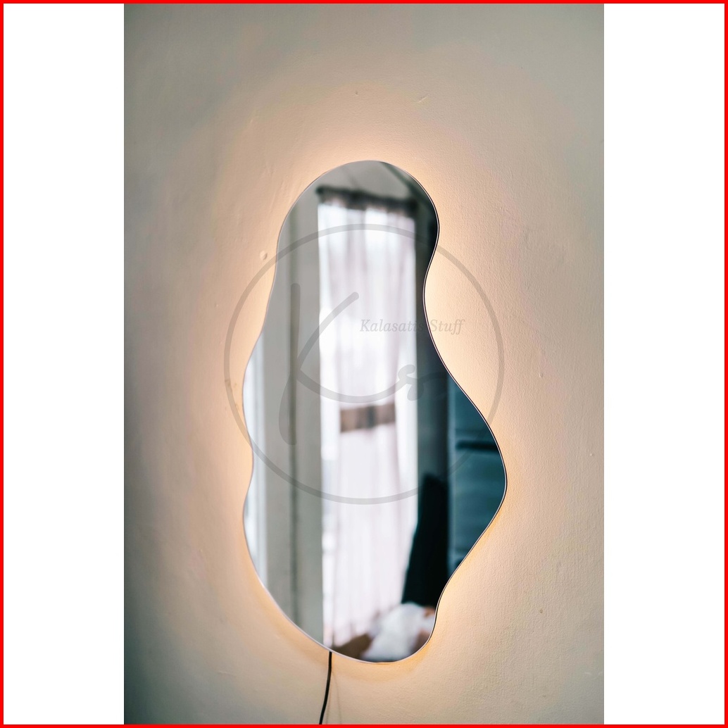 Cermin Estetik Aesthetic Mirror Led Perlengkapan Makeup Pajangan Hiasan Wall Decor Kaca Lampu Tidur Kamar Dinding Gantun