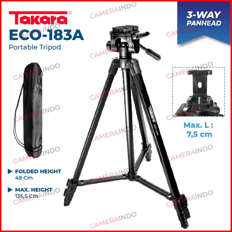 Tripod Takara Eco 183a Tripod Hp Kamera Dslr Mirrorless Bag Hitam