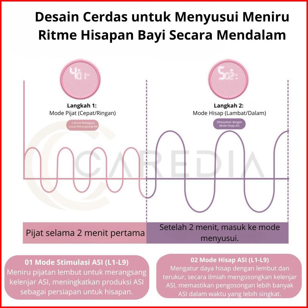 Caredia Pompa Asi Elektrik Tanpa Kabel Pompa Asi Tanpa Portabel Rasa Sakit Otomatis Pumping Asi Efisien Fungsi Lampu Mal