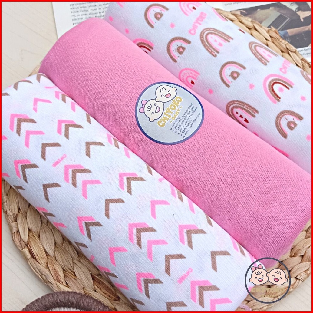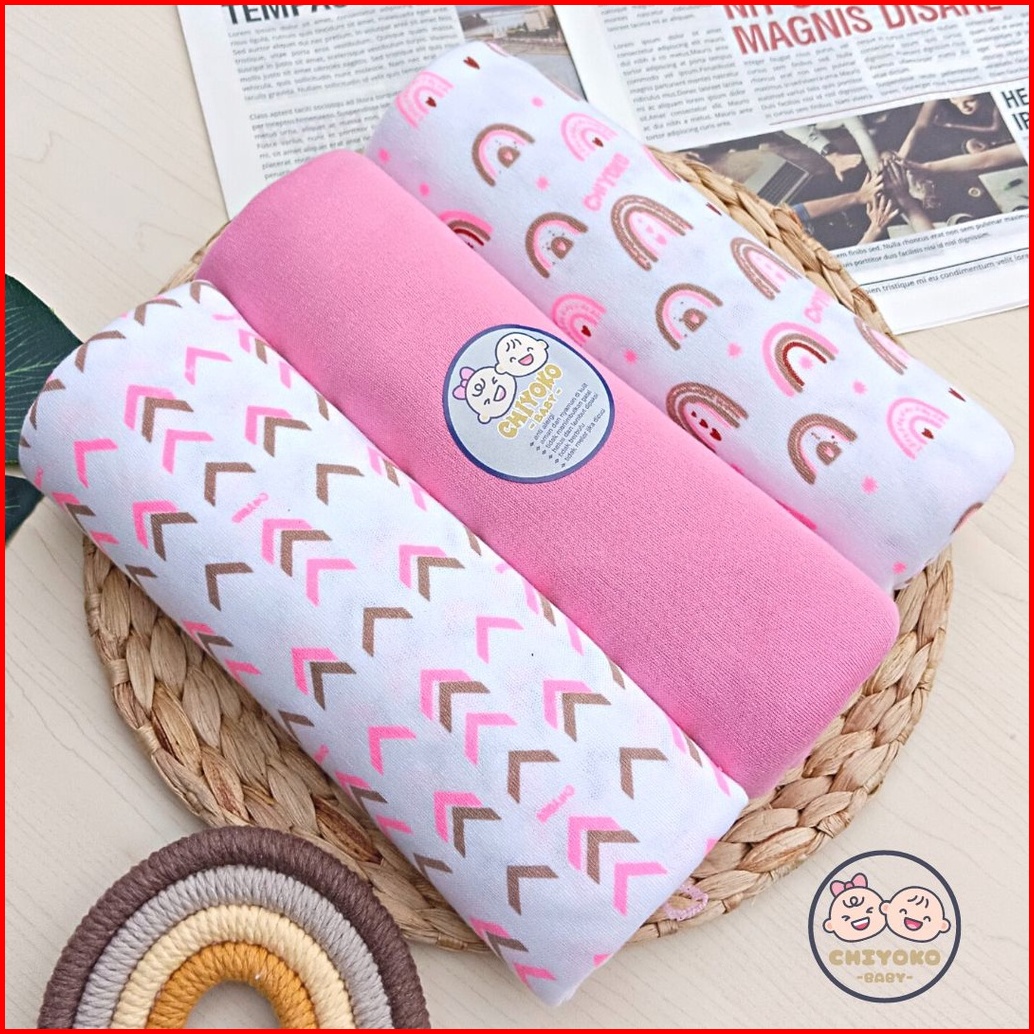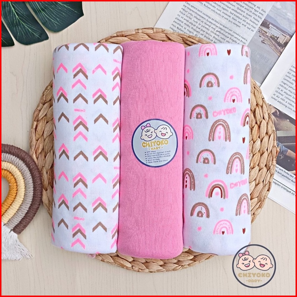 3 Pcs Bedong Bayi Baru Lahir Bahan Kaos 110 X 90 Serian Pink Chiyoko Baby Sni