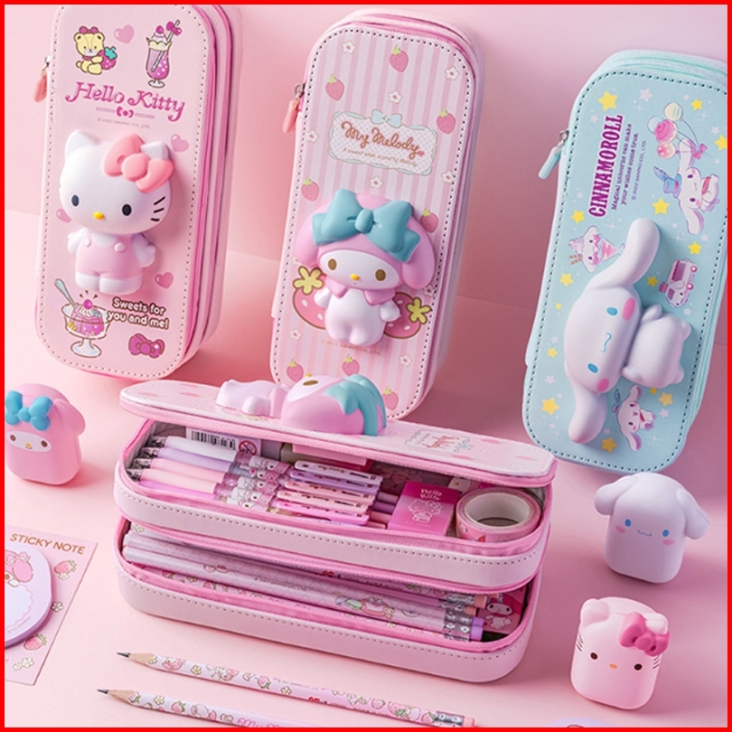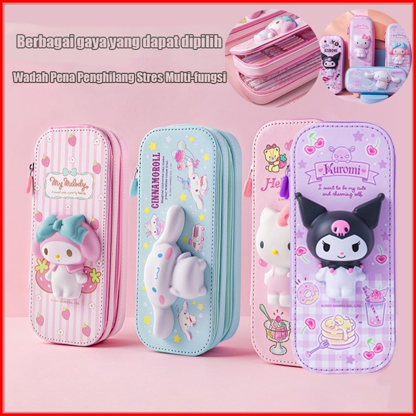 Tersedia Dalam 8 Warna Casing Pena Dekompresi Multi-fungsi Kantong Pensil Lucu Berkapasitas Besar Tempat Pensil Squishy