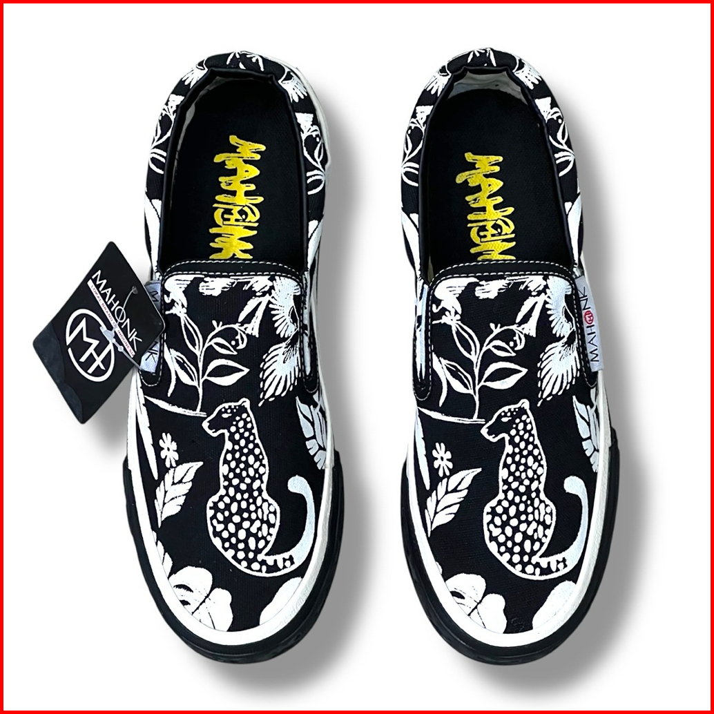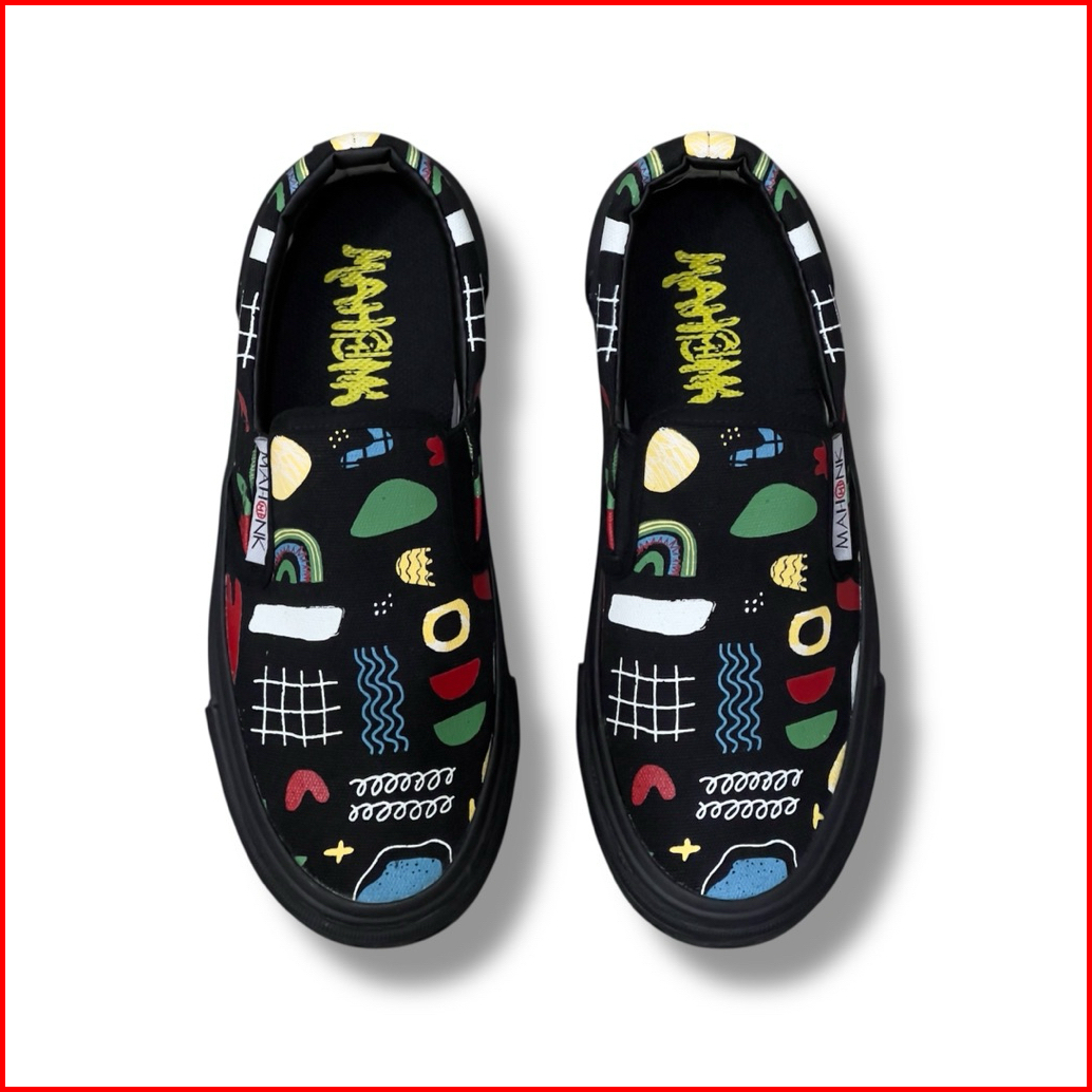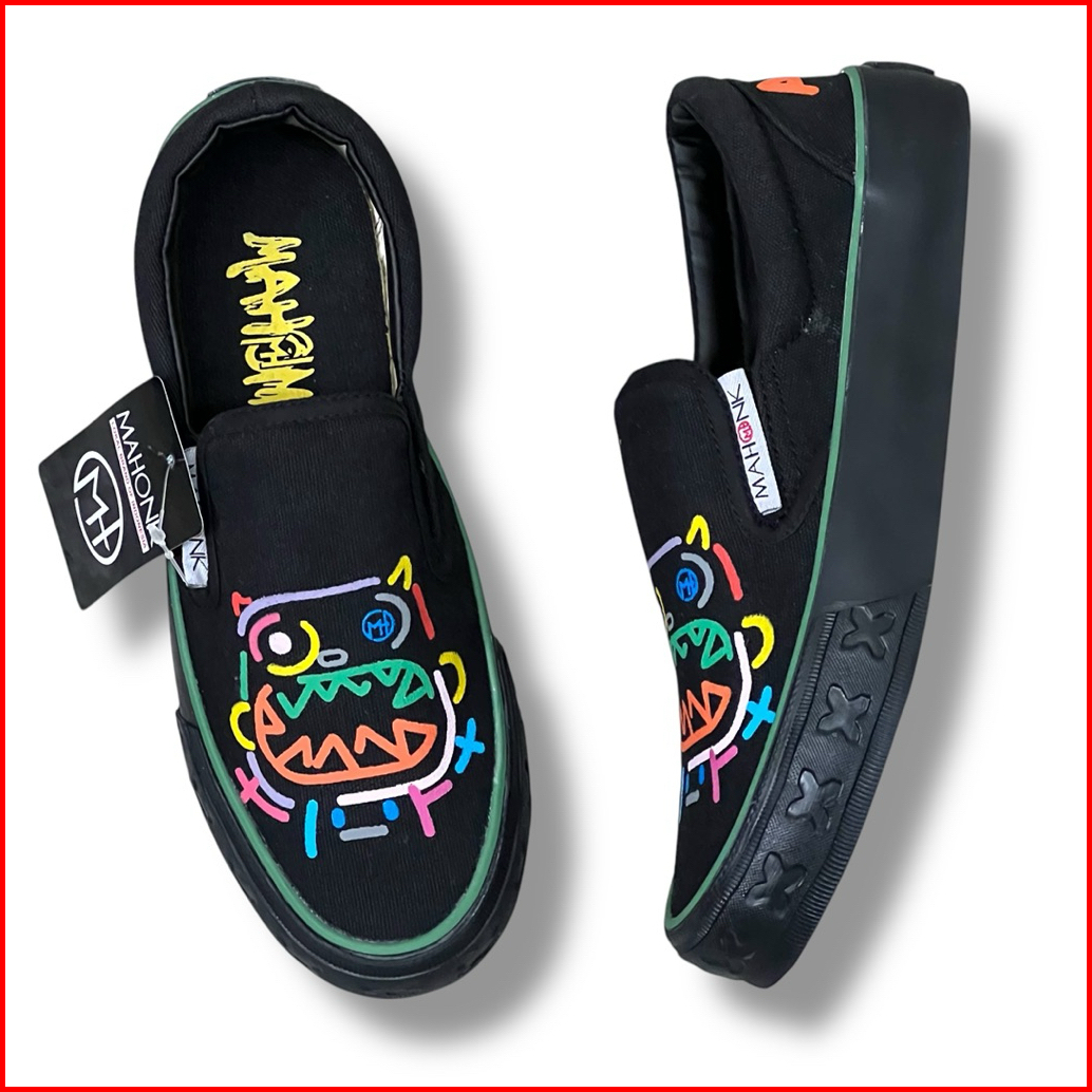 Sepatu Mahonk - Slip On New Kama Full Black Original Brand Lokal Sepatu Sneakers Pria Wanita Ootd Trand Masa Kini