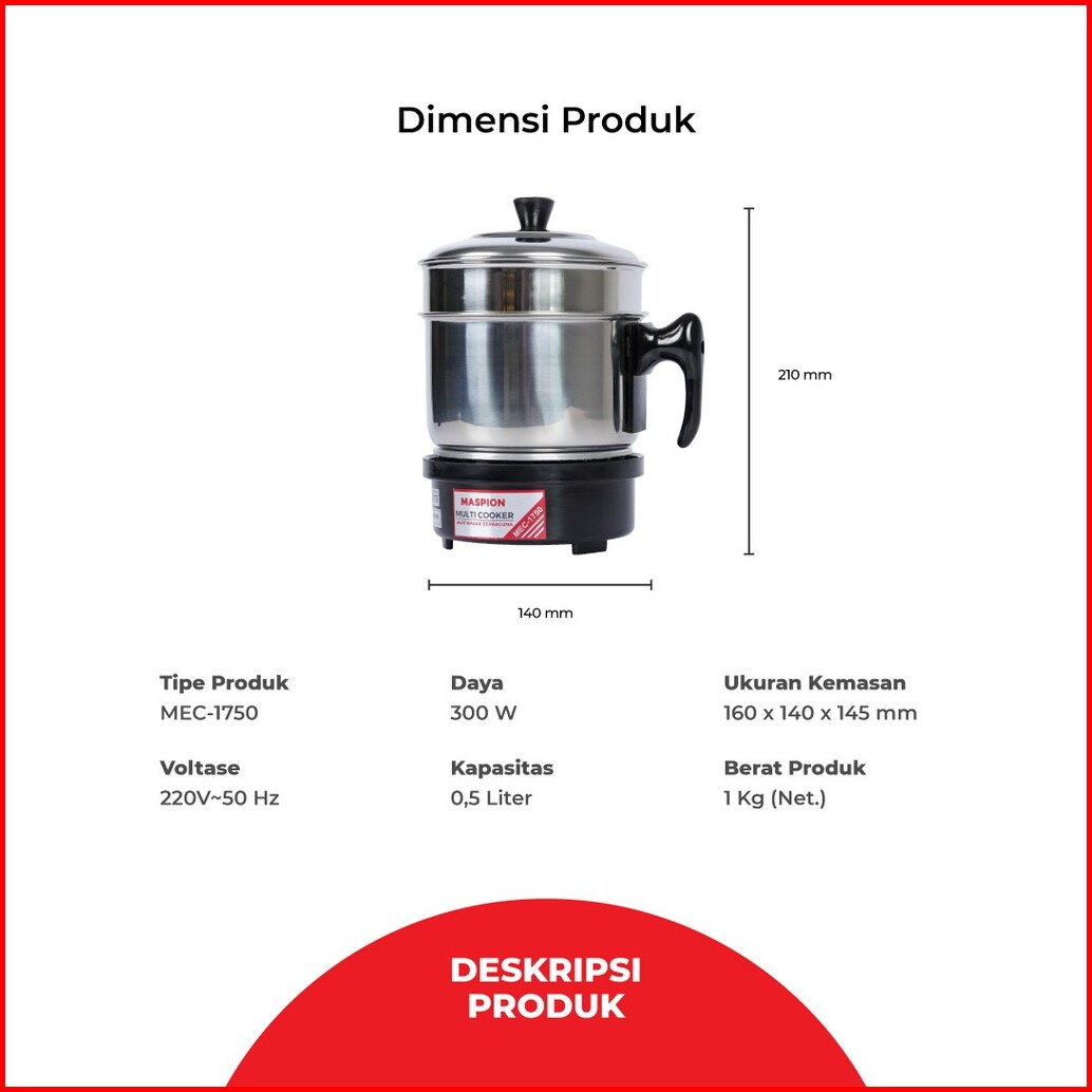 Maspion Travel Cooker Alat Masak Portable 0.5 Liter Mec-1750