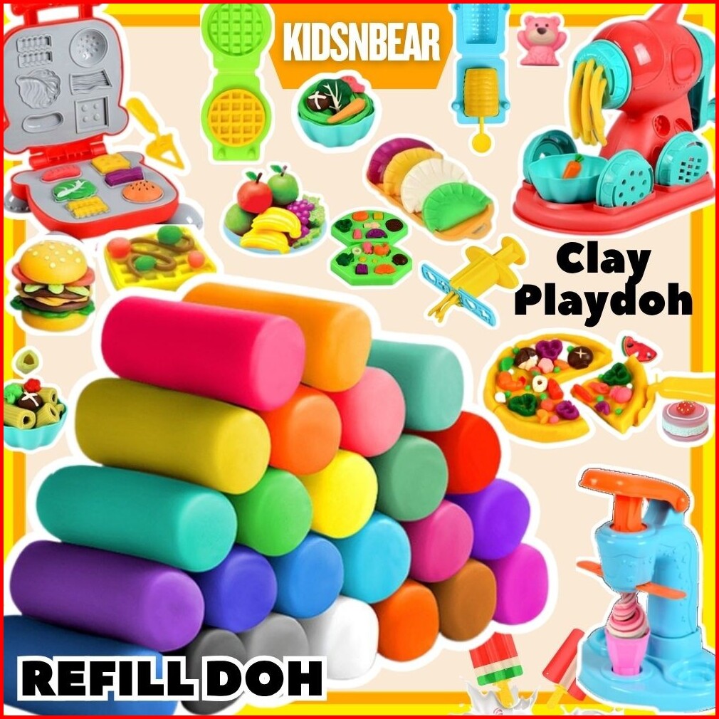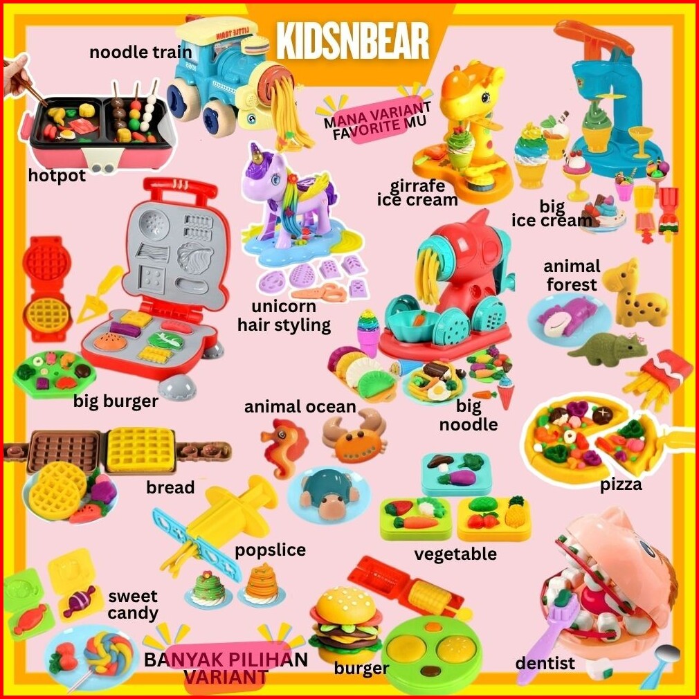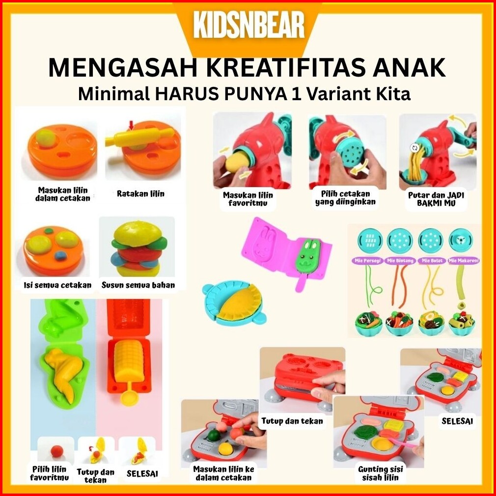 Mainan Anak Perempuan - Clay Mainan Anak Isi 12 Pcs - Mainan Edukasi Anak - Lilin Mainan Burger Pizza Dentist Noodle Ice
