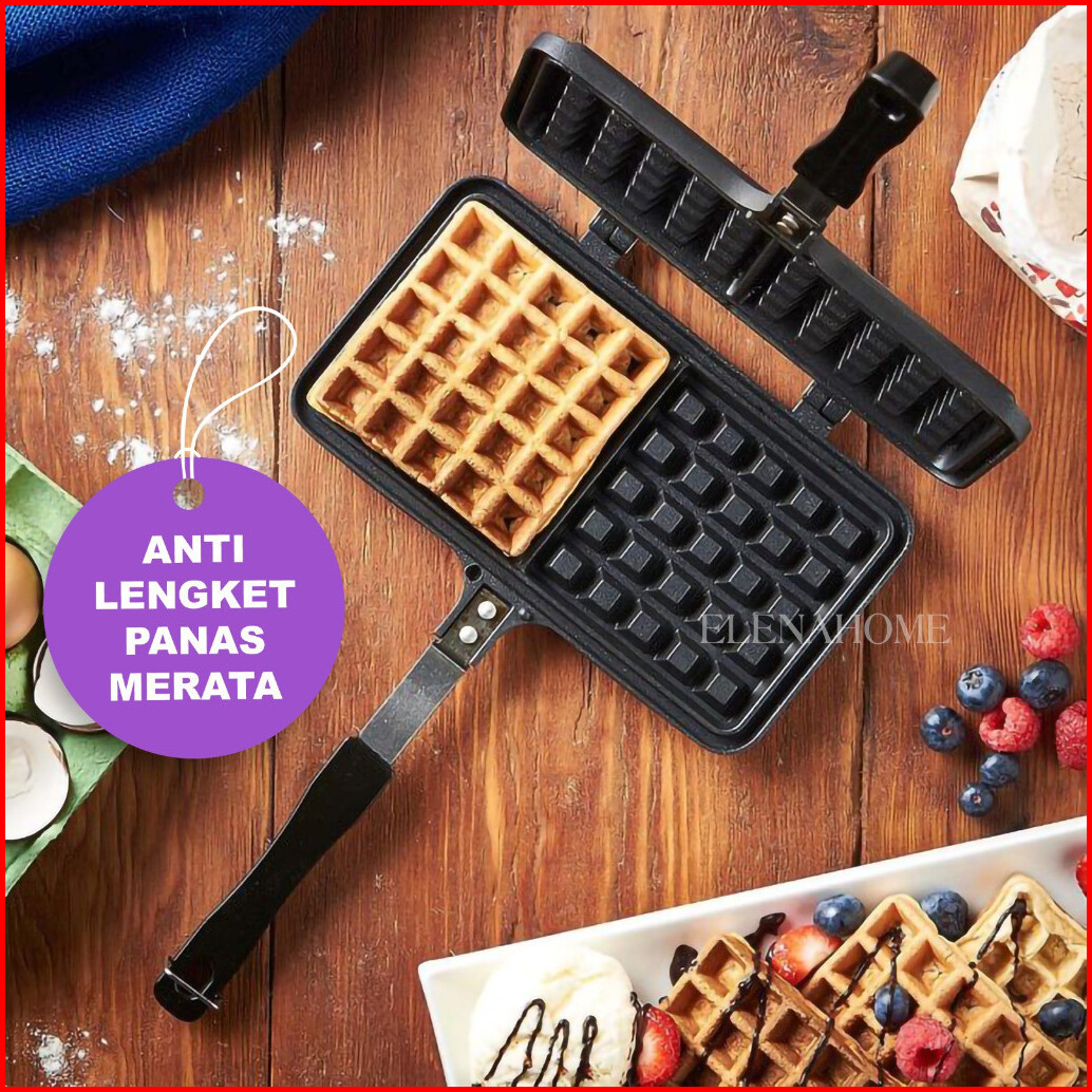 Waffle Maker New Panjang Cetakan Kue Wafel Gm 2175 Double Belgian Waffel Anti Lengket Manual Tanpa Listrik Besar