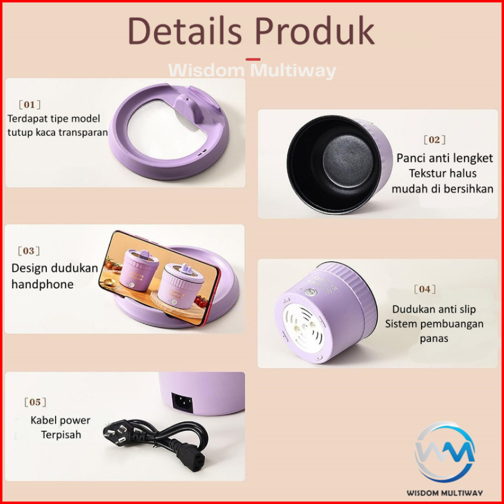 Panci Listrik Serbaguna 1.2l Anti Lengket Panci Listrik Low Watt Penanak Nasi Mini Portable