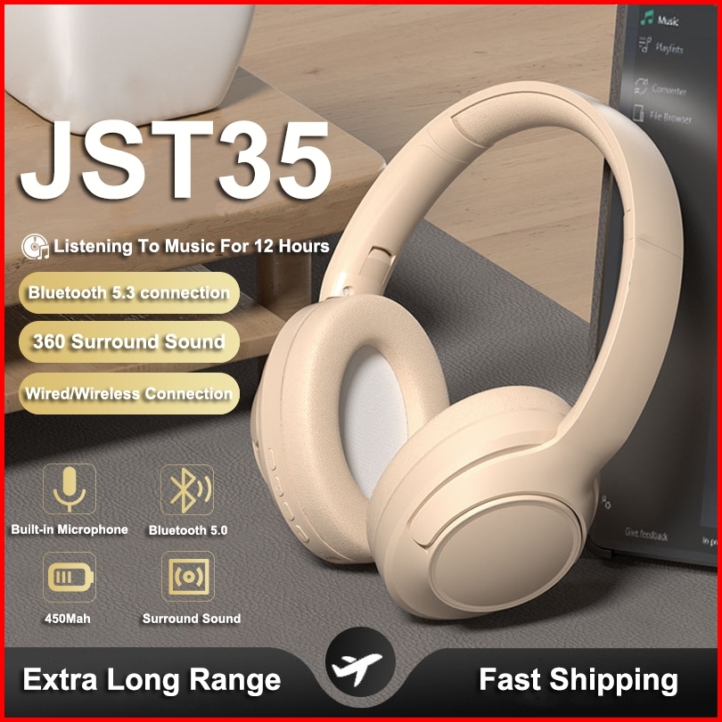 Jst-35 Foldable Bluetooth 5.0 Headphone Wireless Headset With Microphone Hifi Stereo Earphones 450mah Noise Reduction He