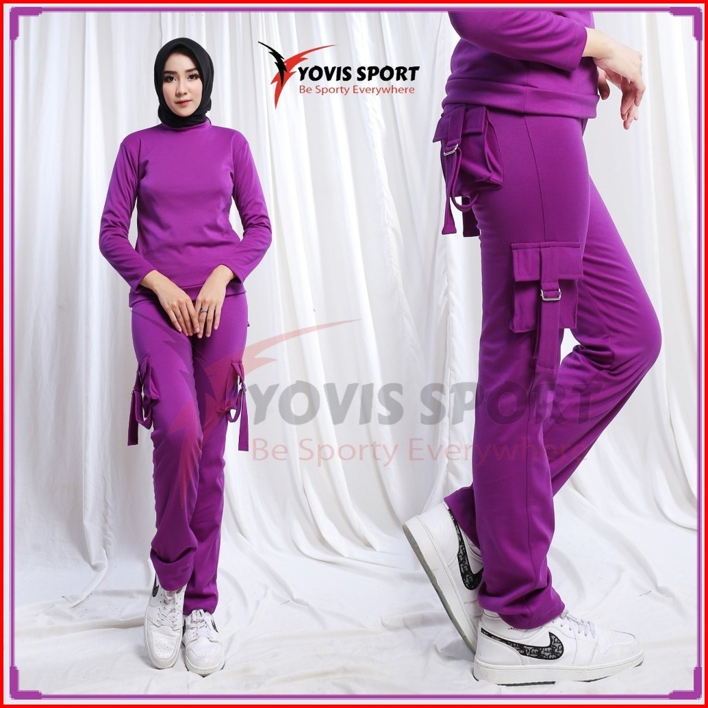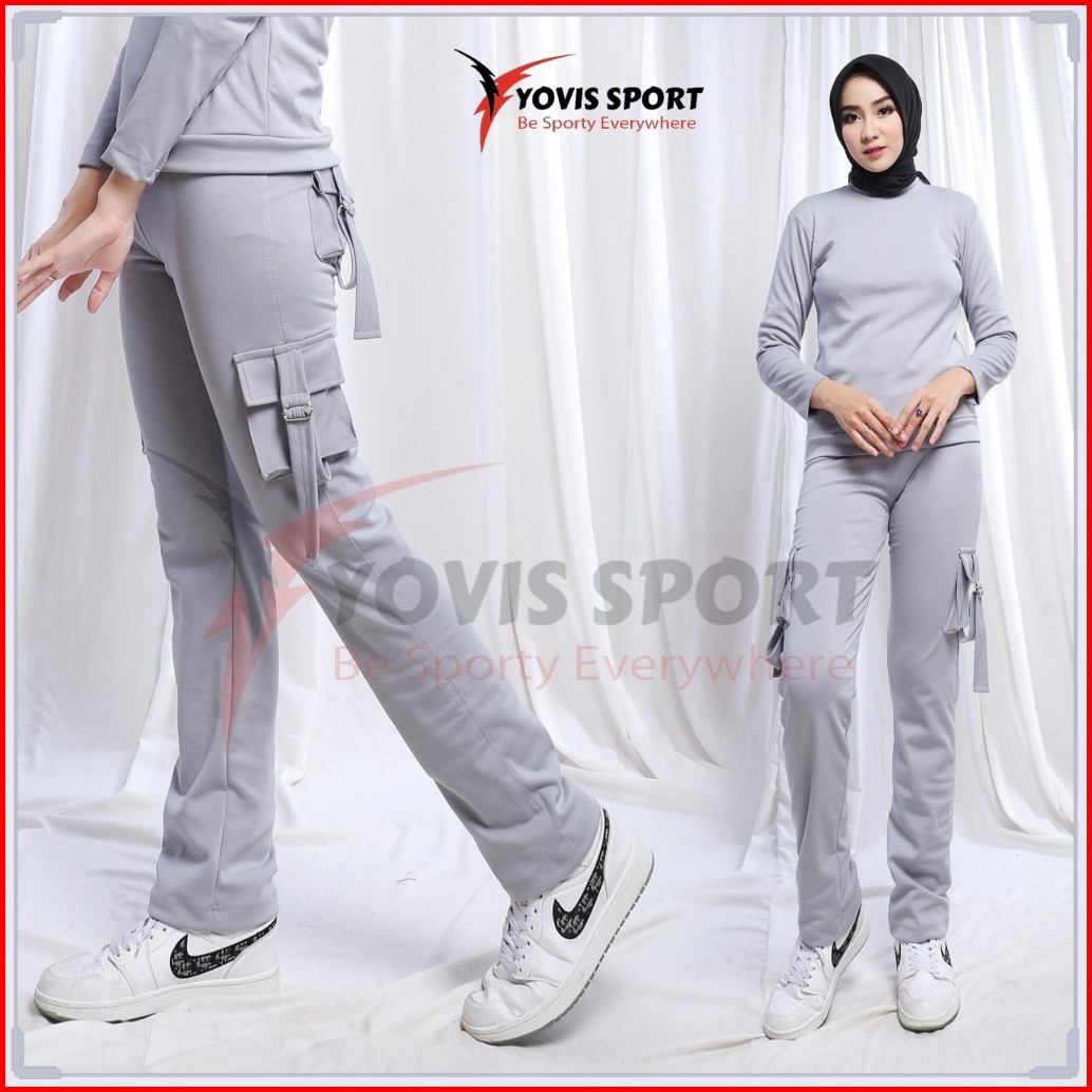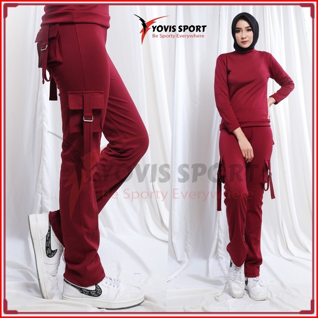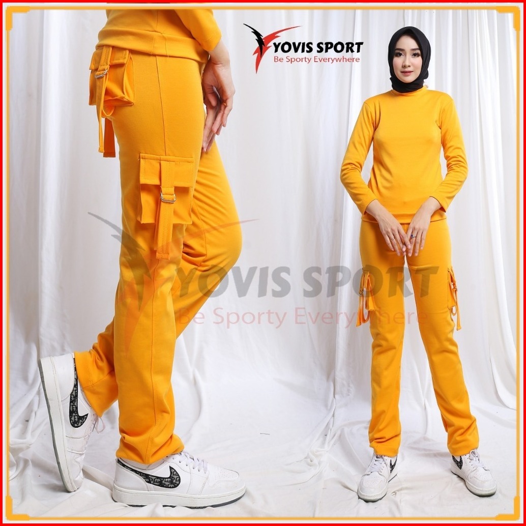 Celana Senam Kargo Kantong 4 Yovis Sport Celana Olahraga Panjang Wanita