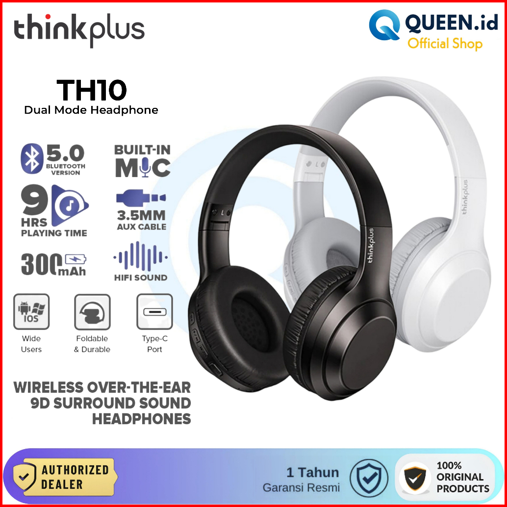 Thinkplus Th10 Headset Bluetooth 5.0 Wireless Wired Dual Mode Stereo Bass Headphone Aux 3.5mm