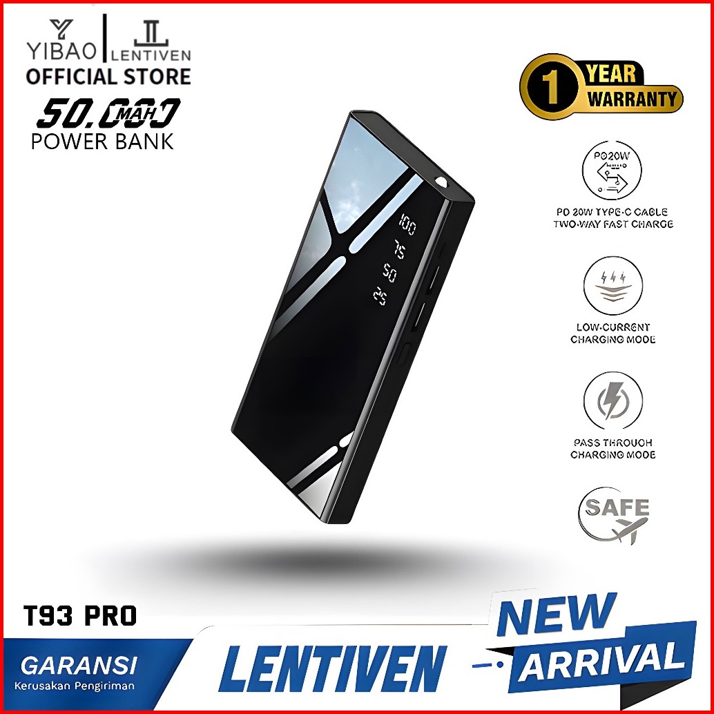 Yibao Lentiven Powerbank 50000 Mah Fast Charging 4 Usb Lightning Type C For Iphone Android Led Digital Display T93