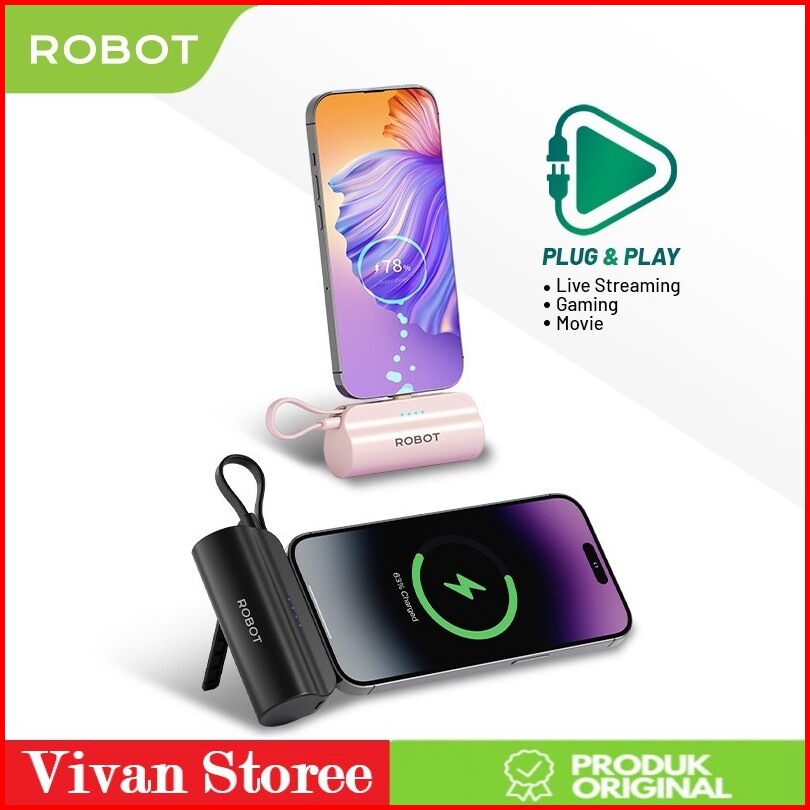 Robot Power Bank 4500mah Powerbank Mini Rp-051l Rp051c Port Type-c Lightning Garansi Original Resmi
