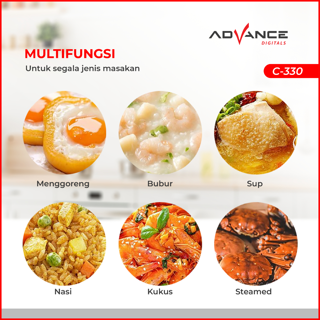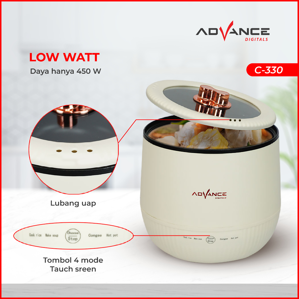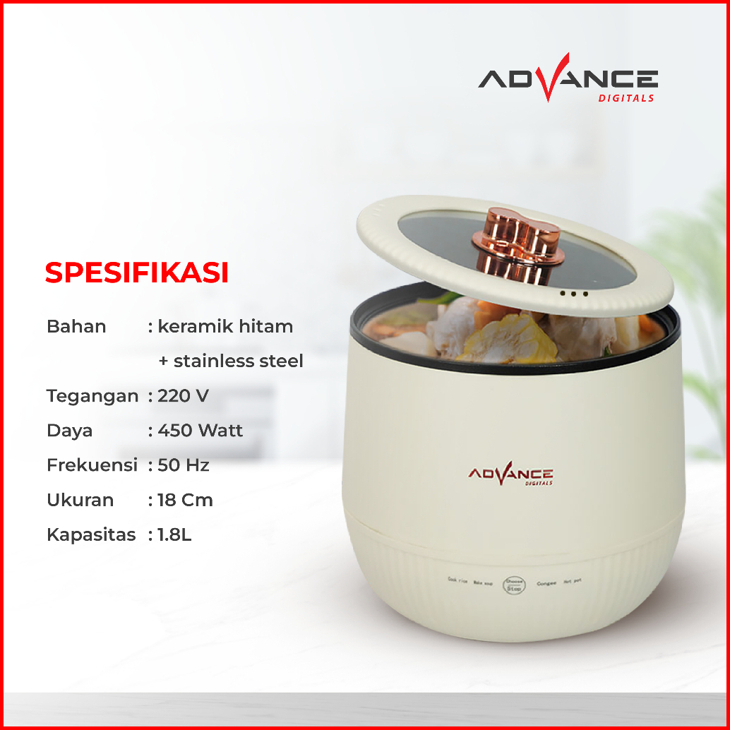 Advance C330 Panci Listrik Serbaguna Untuk Goreng Rice Cooker Masak Nasi Hot Pot Panci Listrik Multifungsi