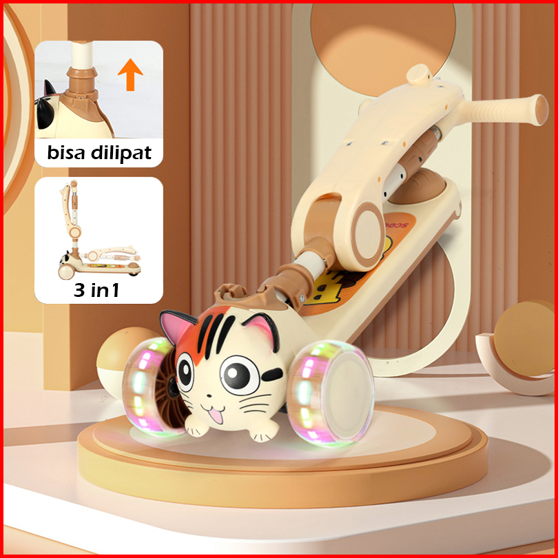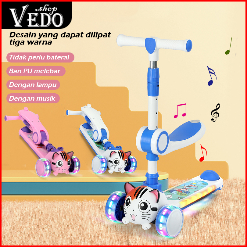 Skuter Anak Roda 3 Dengan Lampu Dan Musik Scooter Otoped Roda 3 Dapat Dilipat Skuter Anak Muat 100kg