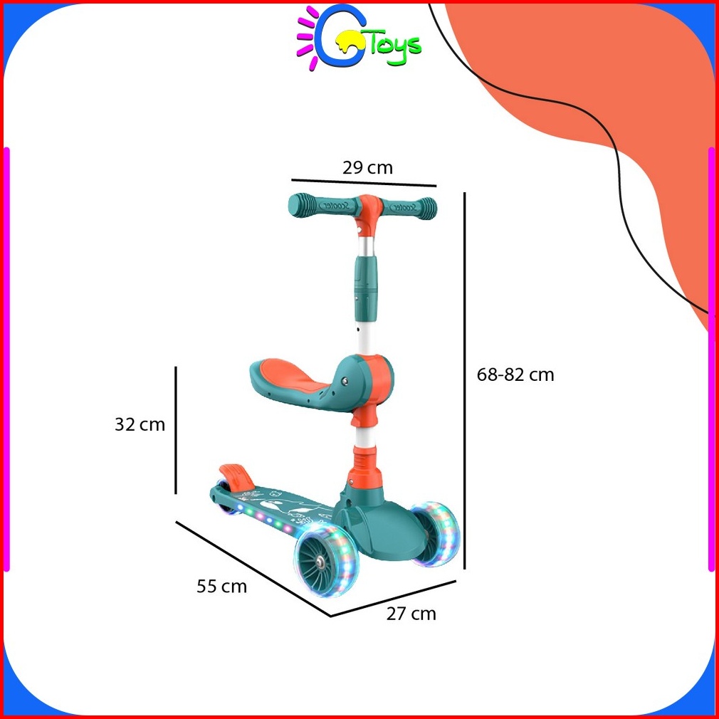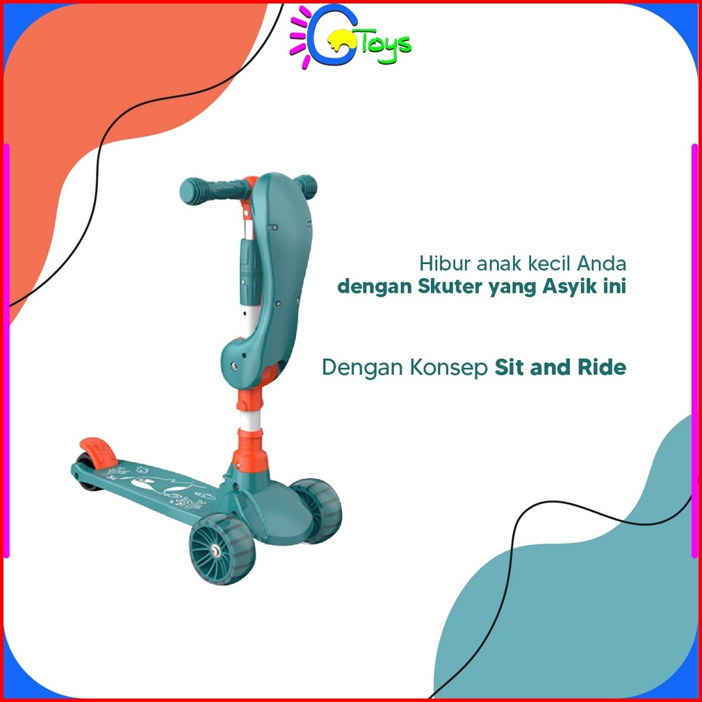 Cr-m290 Mainan Anak Skuter Otoped Sepeda Duduk 3 Roda 2in1 Ada Musik Lagu Lampu Scooter Anak Roda Nyala