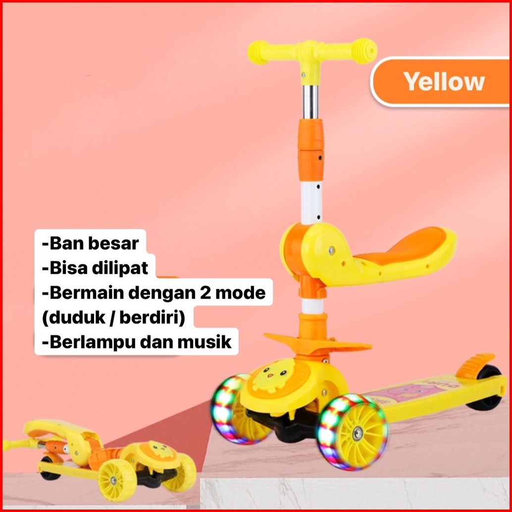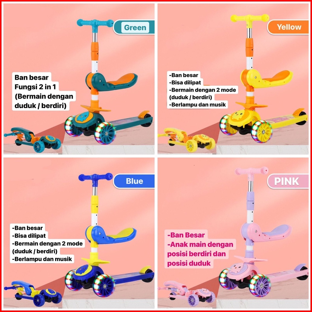 Scooter Anak Skuter Otoped Roda 3 Mainan Anak Dengan Tempat Duduk Musik Dan Lampu Skuter Anak