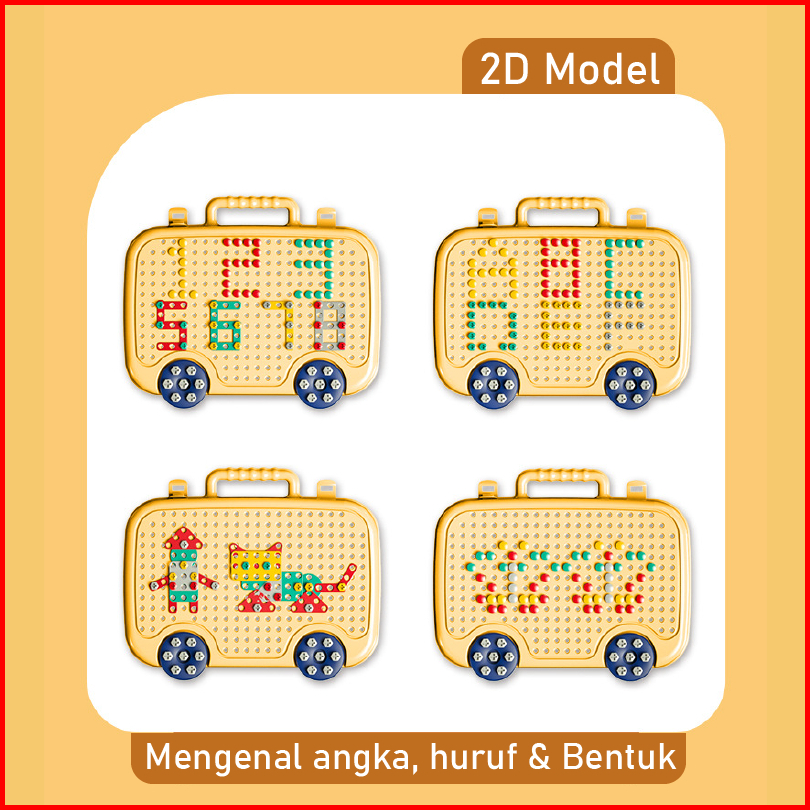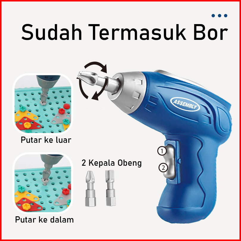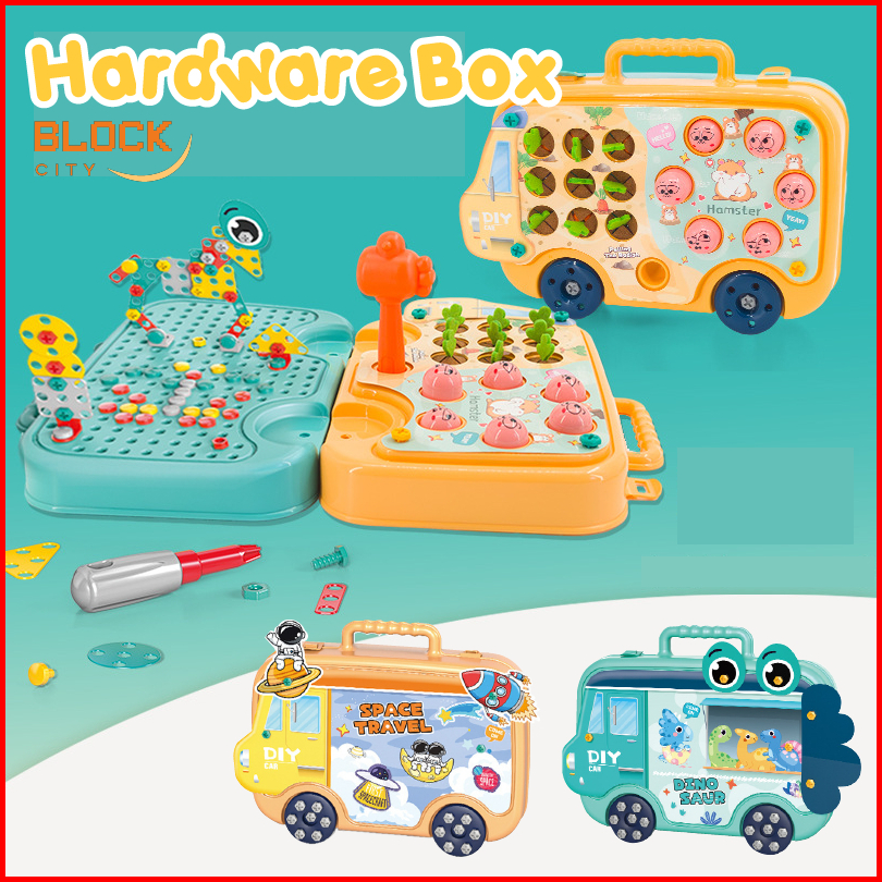 Block City-diy Mainan Drill Mainan Bongkar Pasang Obeng Anak Anak Sudah Termasuk Bor Baut Puzzle Koper Bor Hamster