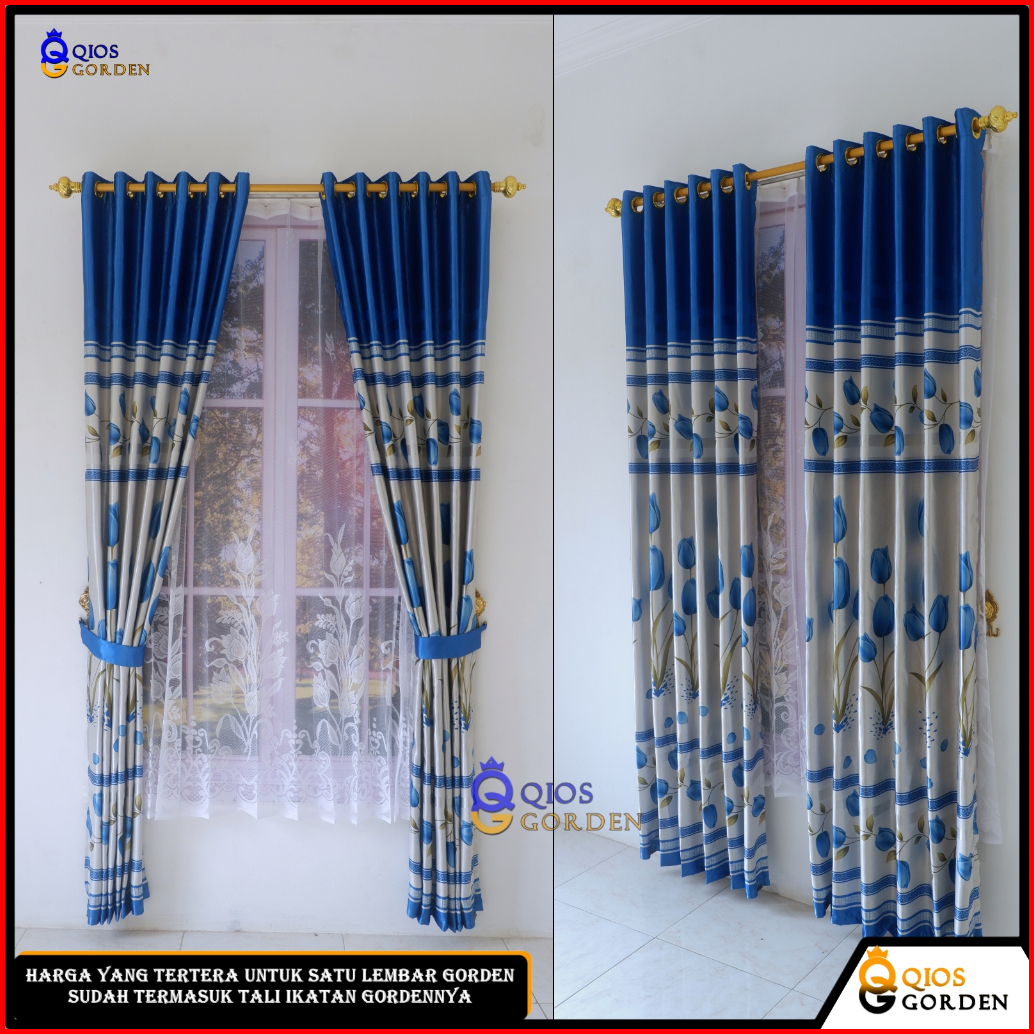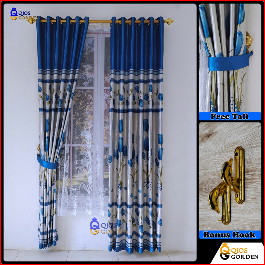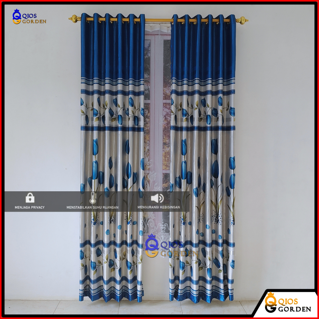 Hordeng Jendela Kamar Mewah Bahan Blackout Tebal Motif Bunga Tulip Model Smokering