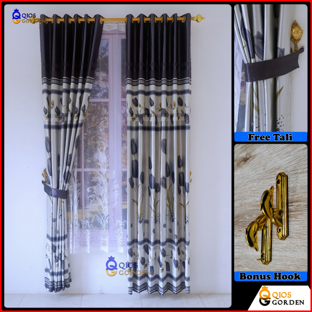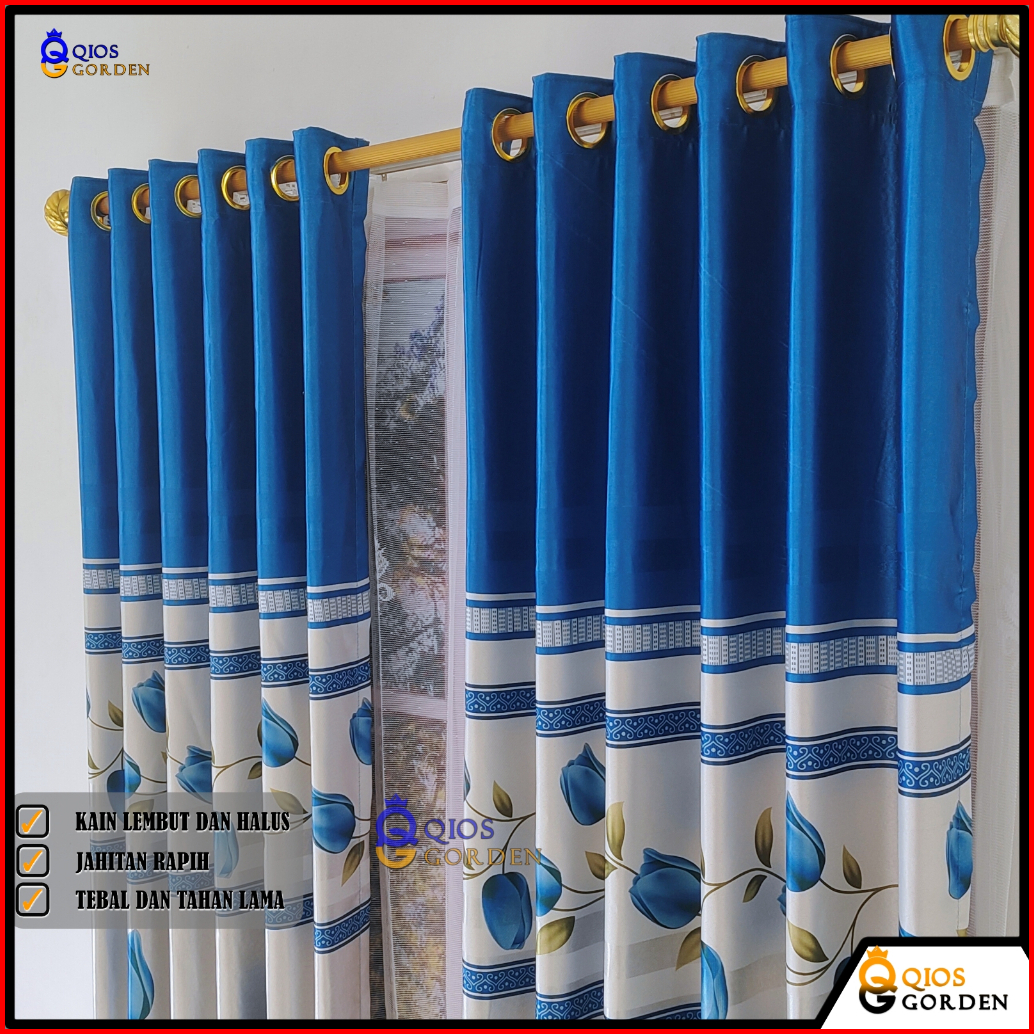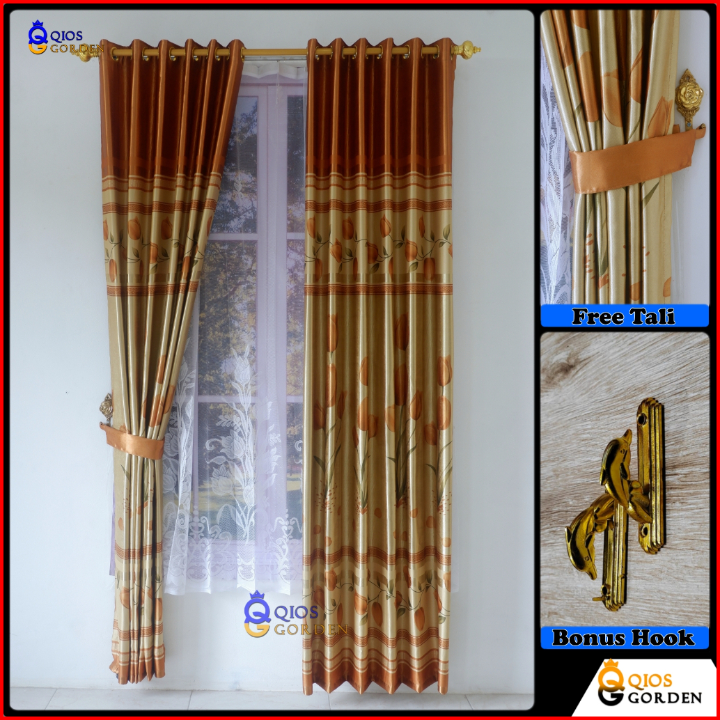 Hordeng Jendela Kamar Mewah Bahan Blackout Tebal Motif Bunga Tulip Model Smokering