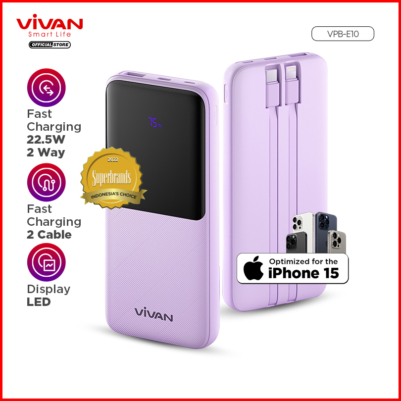 Vivan Powerbank 10000mah Vpb-e10 4 Output Fast Charging 22.5w Pd Led Display Garansi 18 Bulan
