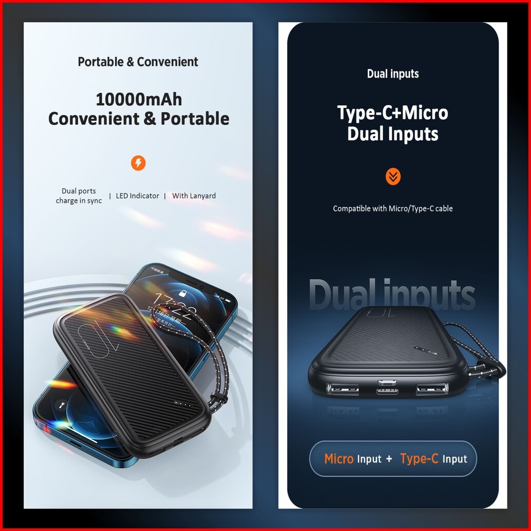 Usams Pb56 Power Bank Lanyard 10000mah Dual Usb