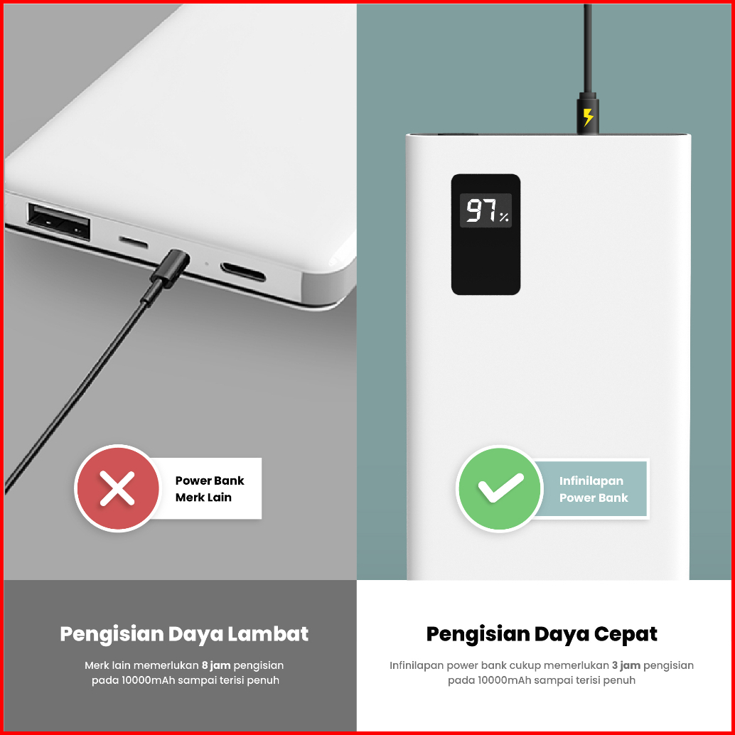 Powerbank Infinilapan 10000mah Mini Murah Lcd Dual Input Port Type C Micro Usb - Fast Charging