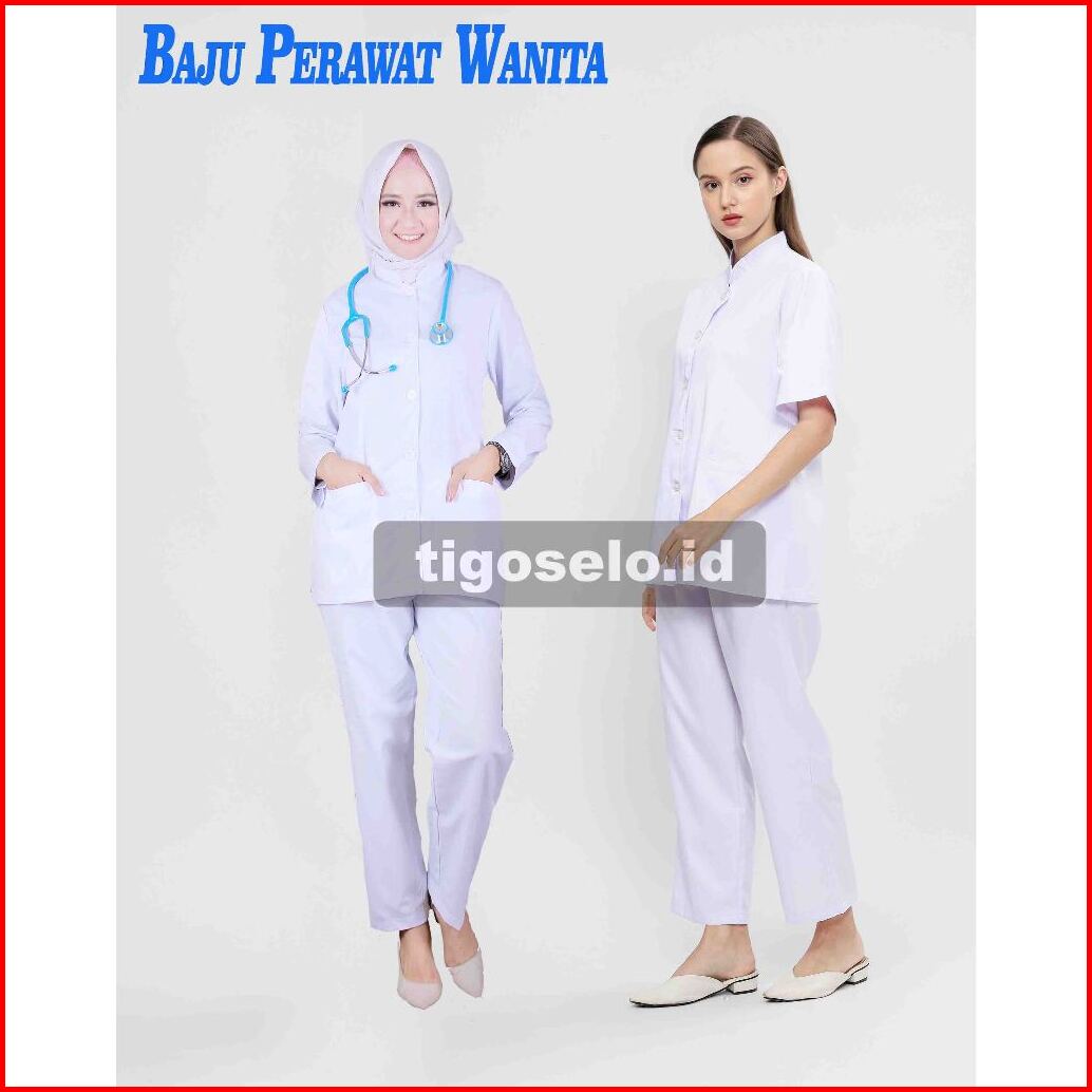 Baju Perawat Wanita Lengan Panjang Seragam Perawat Wanita Lengan Pendek Putih