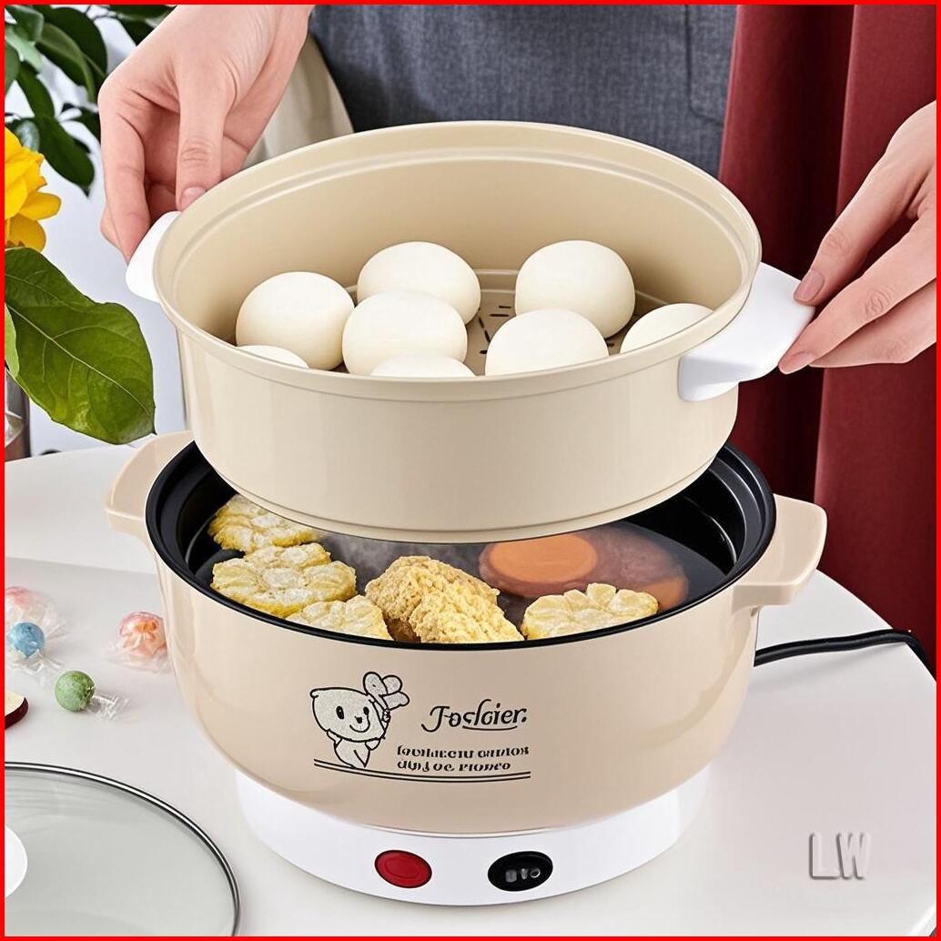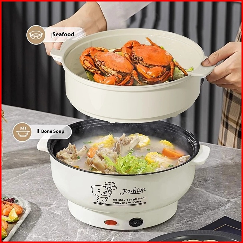 Modern Bell - Panci Listrik Multifungsi Free Kukusan Steamer Plastik Lapis Keramik Anti Lengket Teflon Cooking Pot