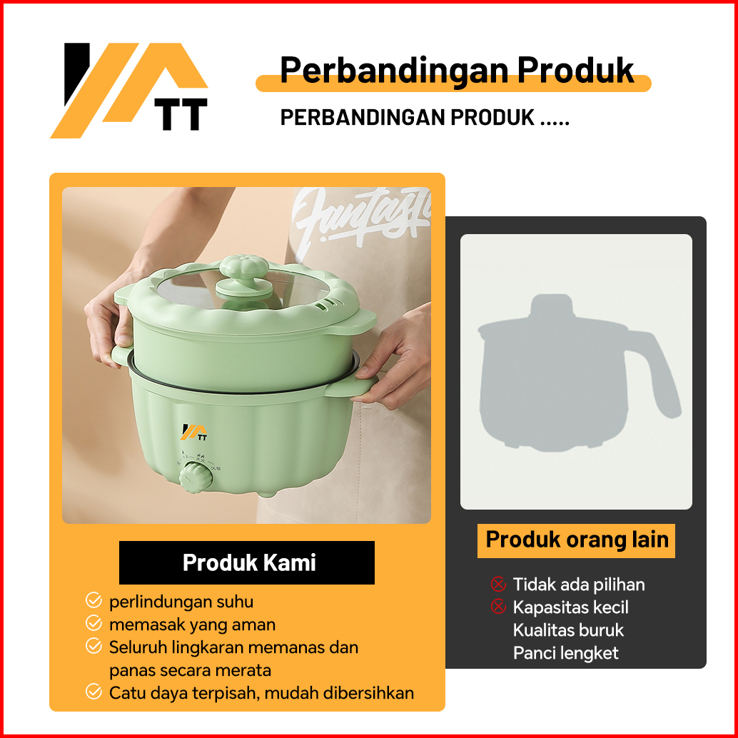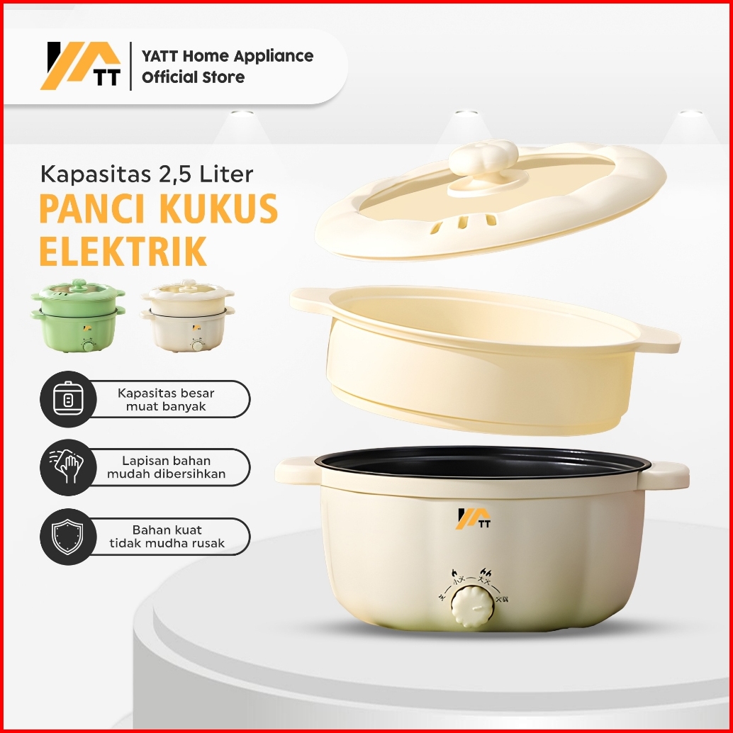Yatt Panci Listrik Bentuk Labu 2 5 Liter Free Kukusan Serbaguna Anti Lengket Low Watt