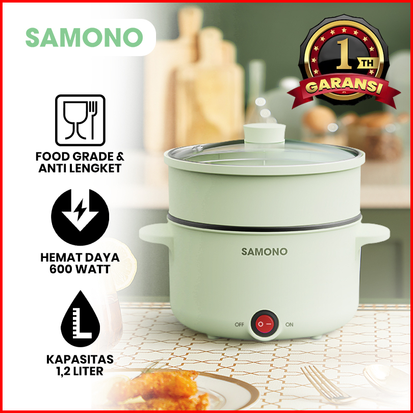 Samono Panci Listrik Serbaguna 1 2l Anti Lengket 600 Watt Material Food Grade Free Kukusan Sw-dg04