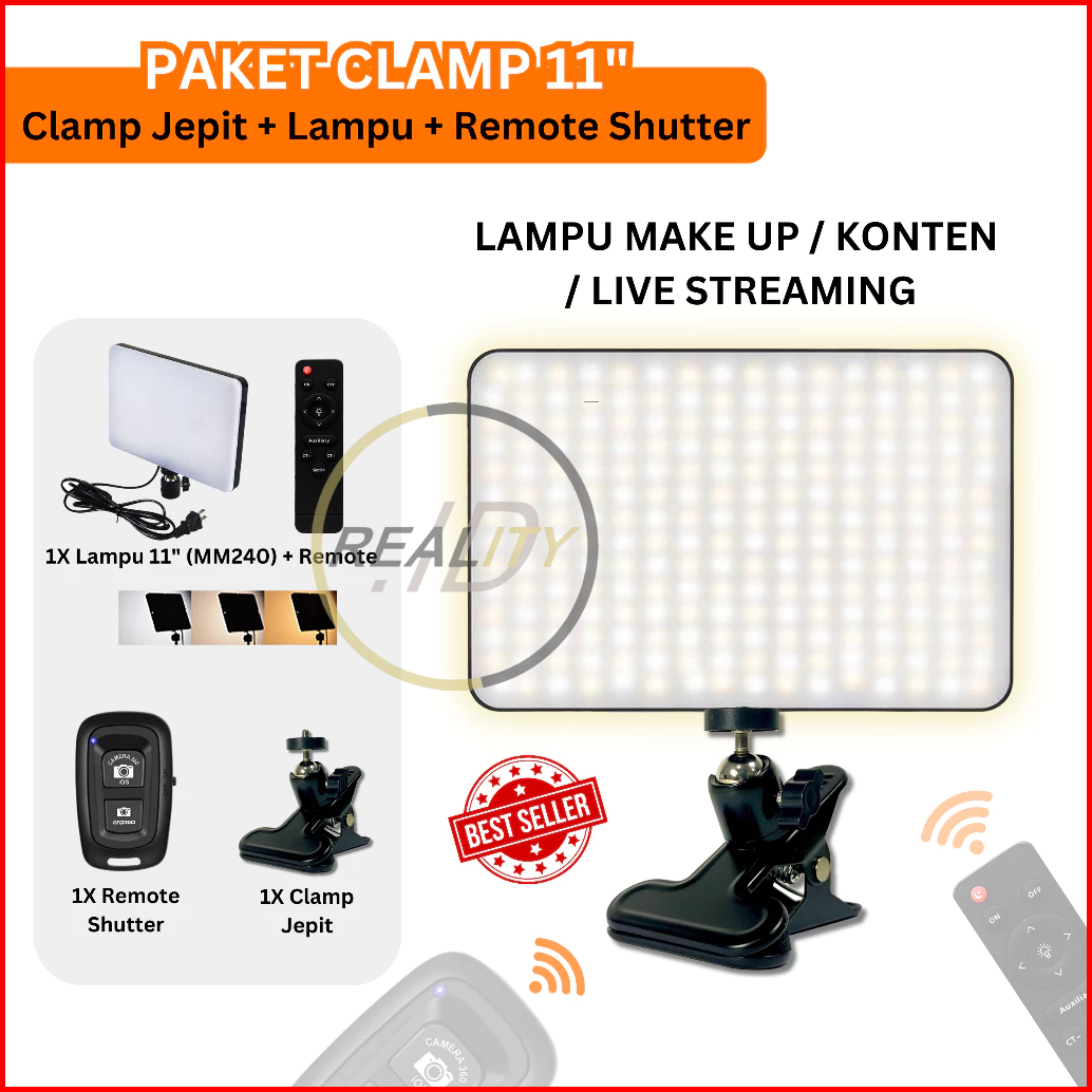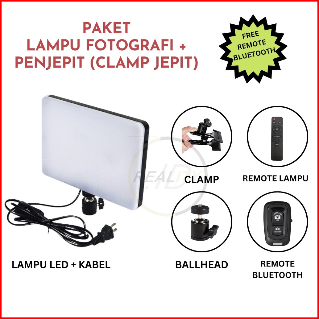 Paket Lampu Fotografi Mm 240 Dengan Penjepit Clamp Jepit Bonus Remote Bluetooth Lampu Mua Konten Kreator Photography Tom