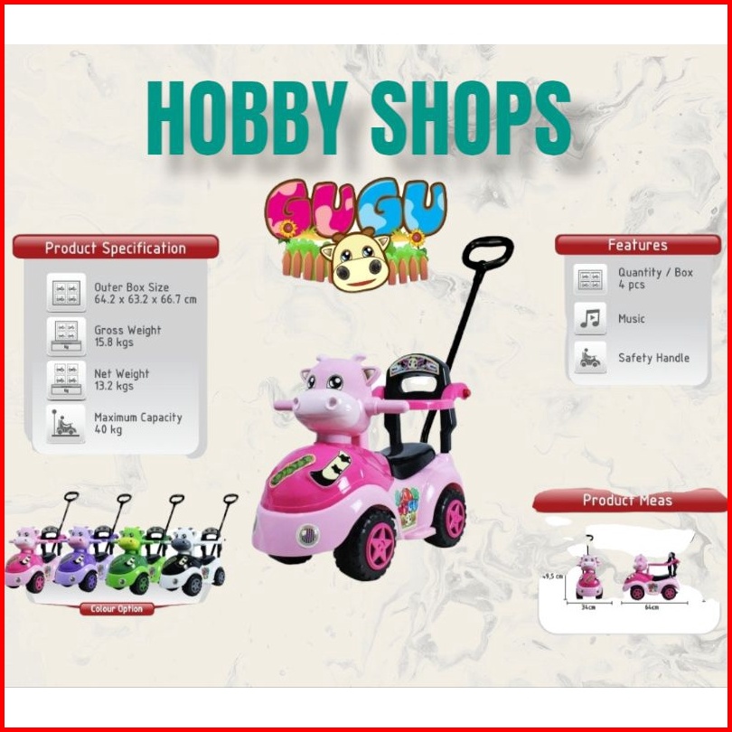 Yotta Gugu Mobil Anak Dorongan Besi Kepala Sapi - Mobil Dorong Odong Odong Sapi - Mobil Ride On Car Anak Sapi