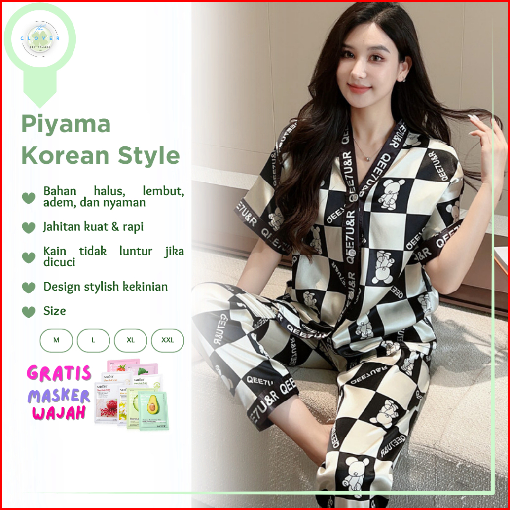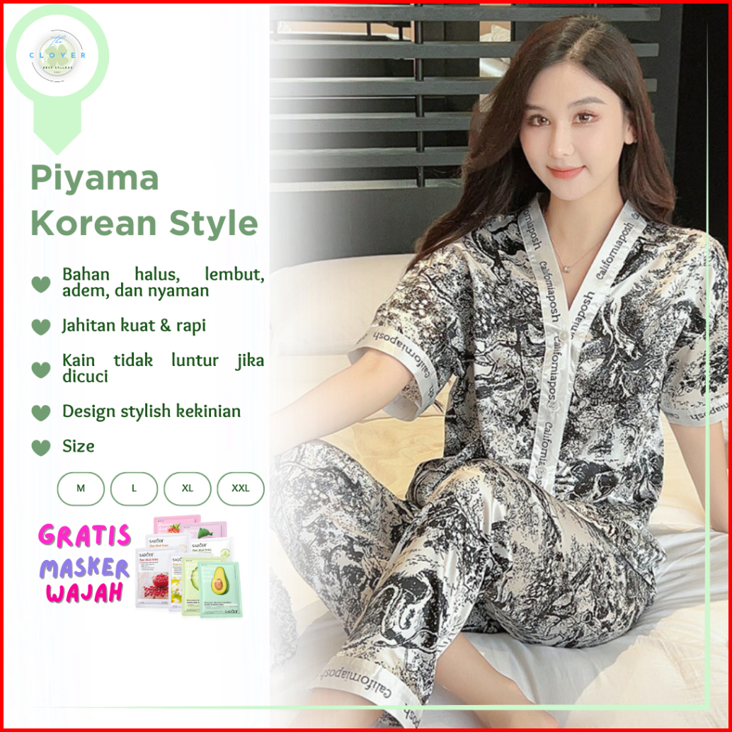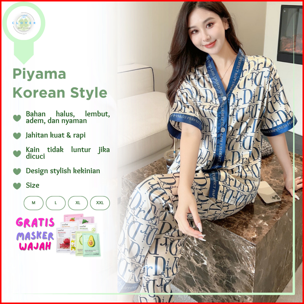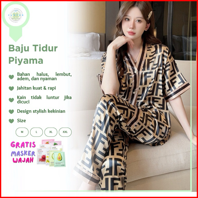 Baju Tidur Piyama Pajamas Wanita Dewasa Import Full Kancing Motif Terbaru Celana Panjang