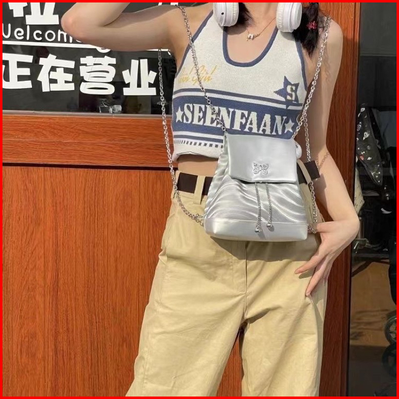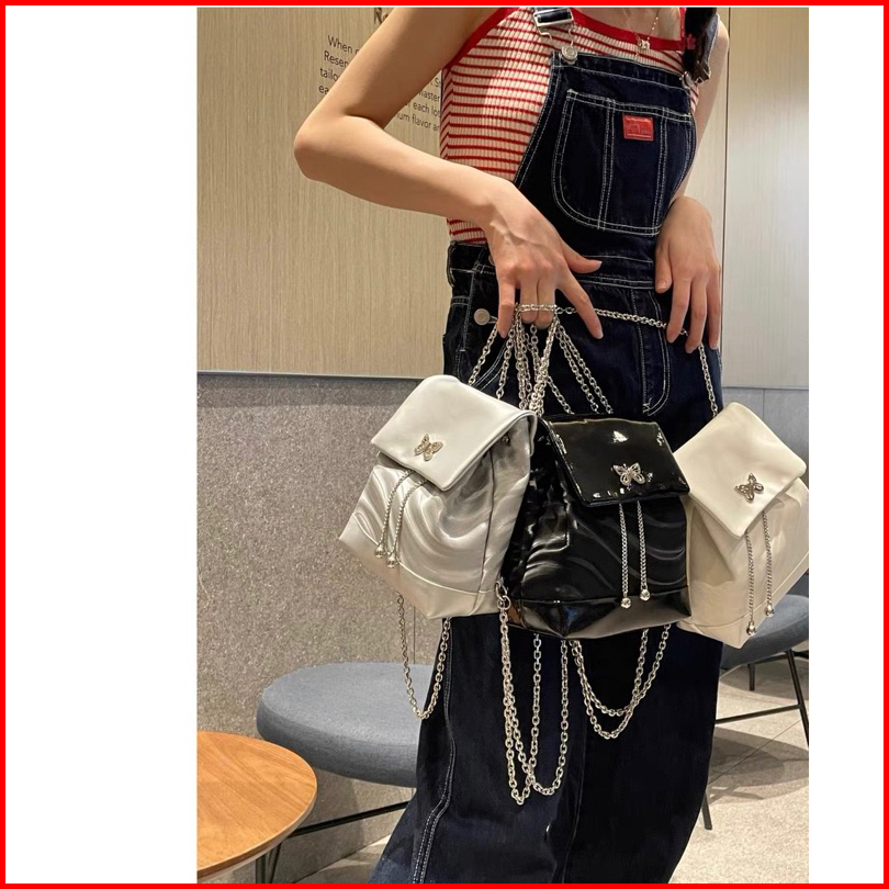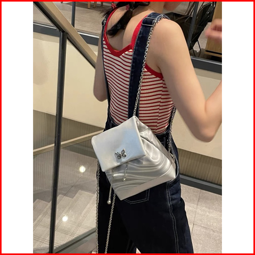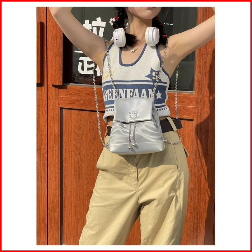 Tas Ransel Bahu Rantai Tas Kulit Perak Mercerized Untuk Wanita