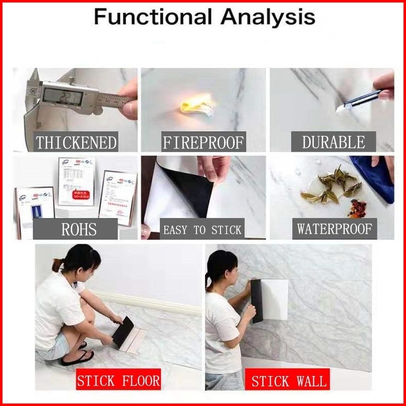 10pcs Wallpaper Dinding Vinyl Marble 30 X 60 Cm Lantai Vinyl Marbel Granit Stiker Lemari Cabinet Marbel