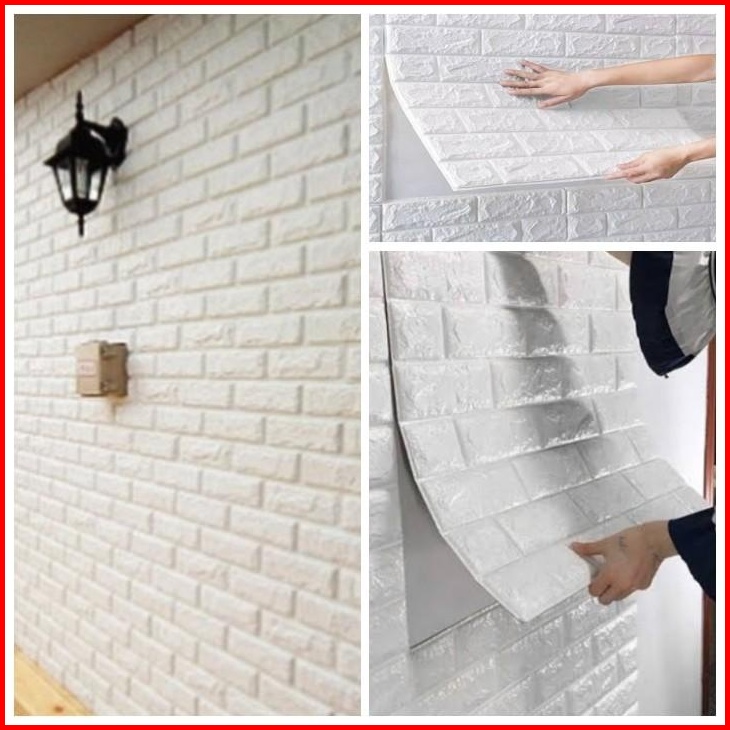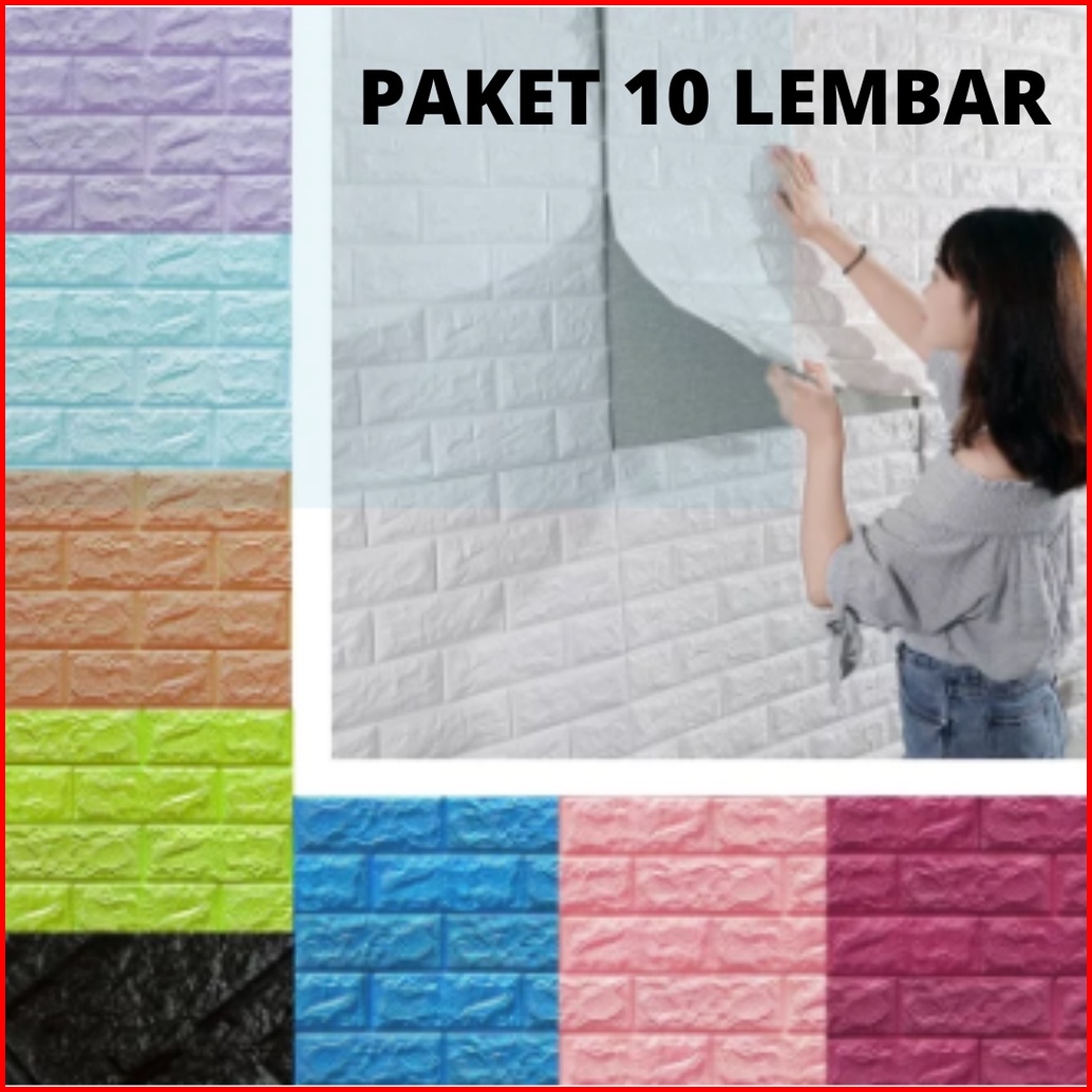 Paket 10 Lembar Wallpaper Sticker 3d Foam Wallfoam Anti Air Motif Bata Seri A