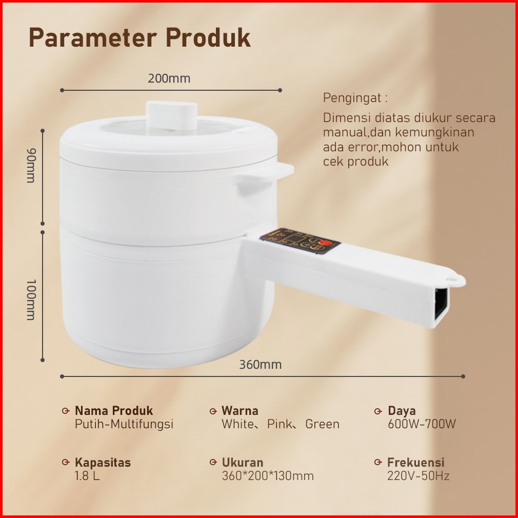 Panci Listrik Low Watt Anti Lengket Multifungsi 1.8l Janji Temu 9 5jam Perlindungan Terlalu Panas Kl-ep01