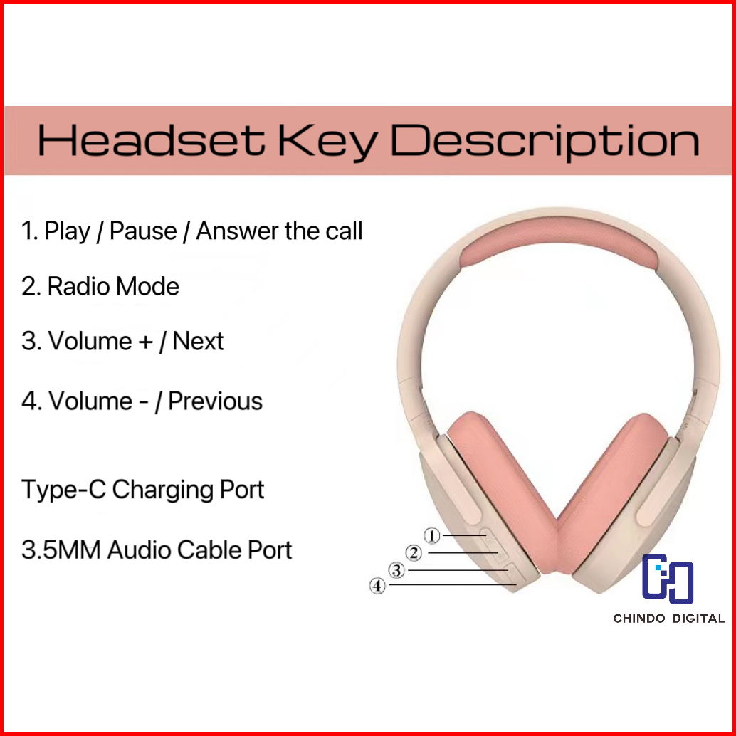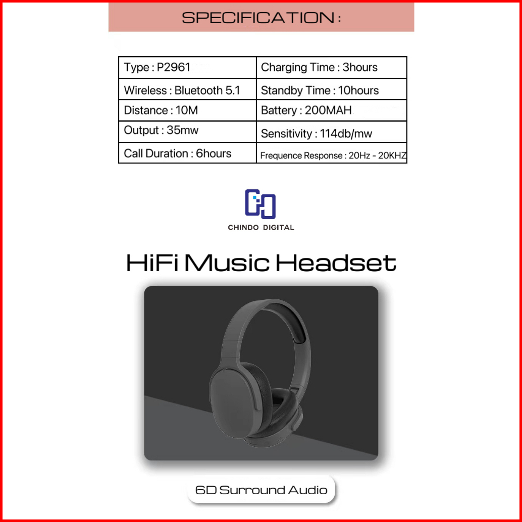 Cid P2961 Headphone Wireless Bluetooth Headset Hifi Stereo Music 6d Socking Bass Tf Aux Support
