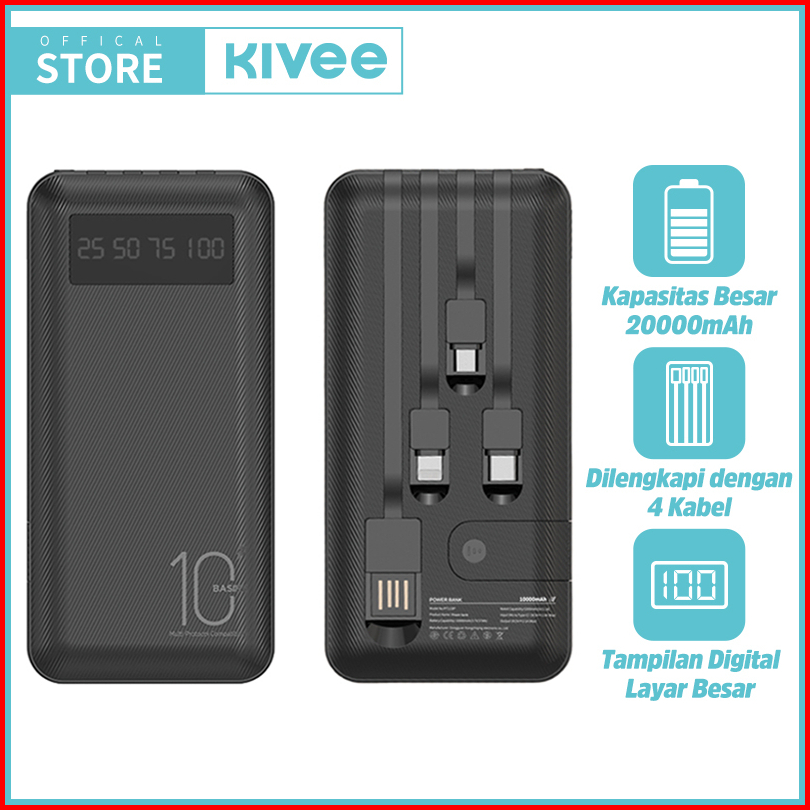 Hot Kivee Powerbank 20000 Mah Fast Charging Murah Mini Lcd With Kabel Data Garansi 1 Tahun